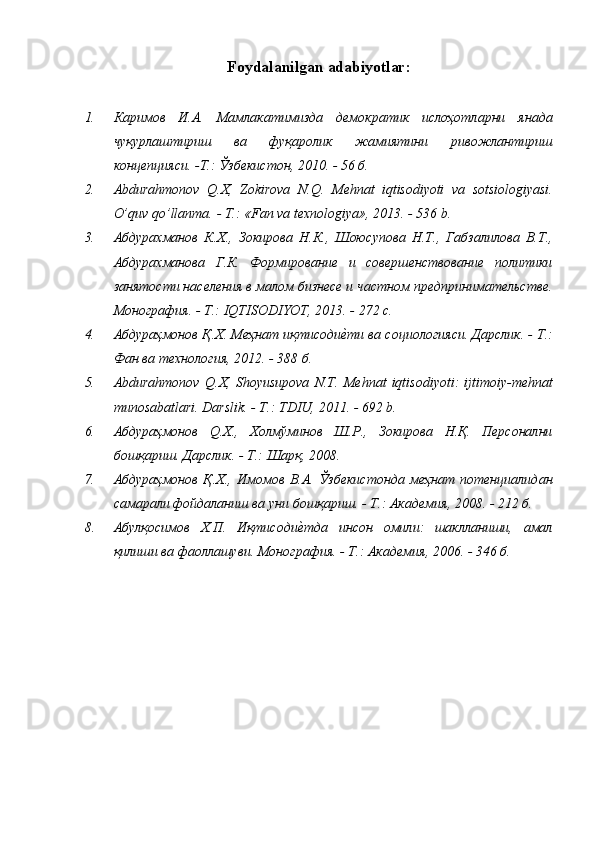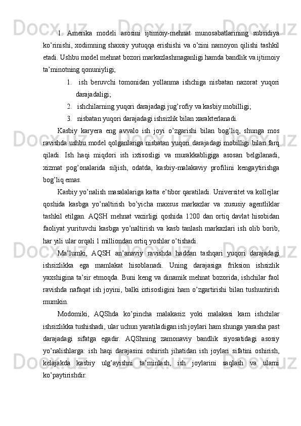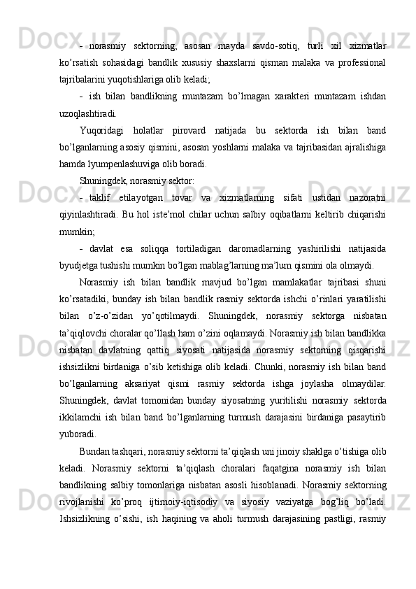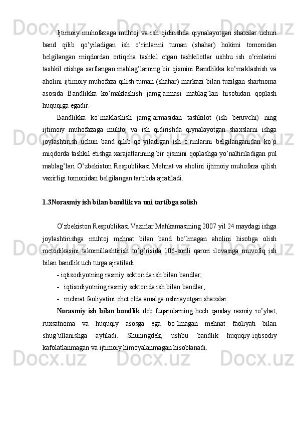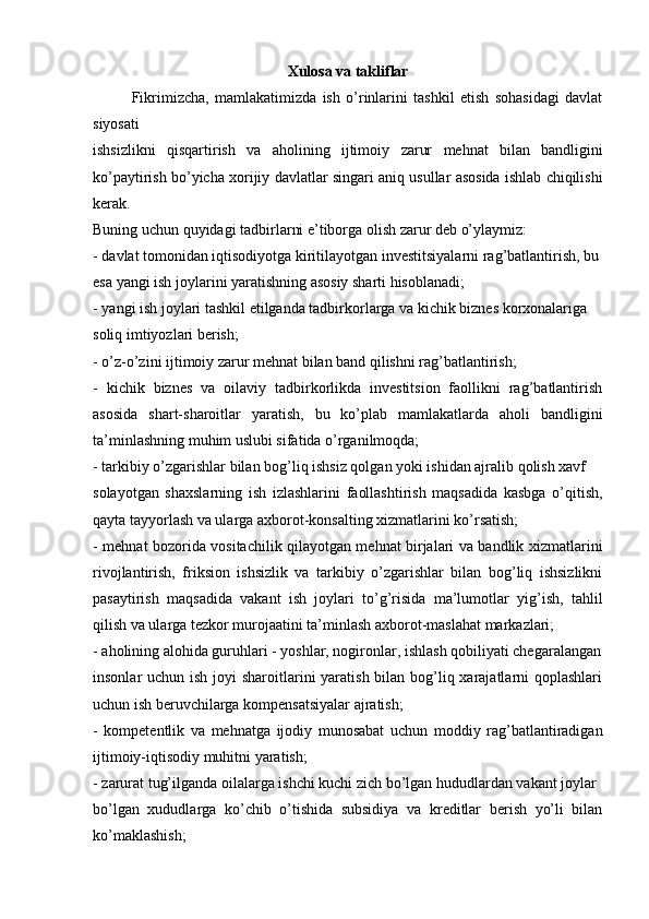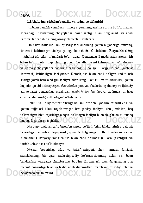 Oʻzbekistonda bandlik siyosati va uni amalga oshirish xususiyatlari