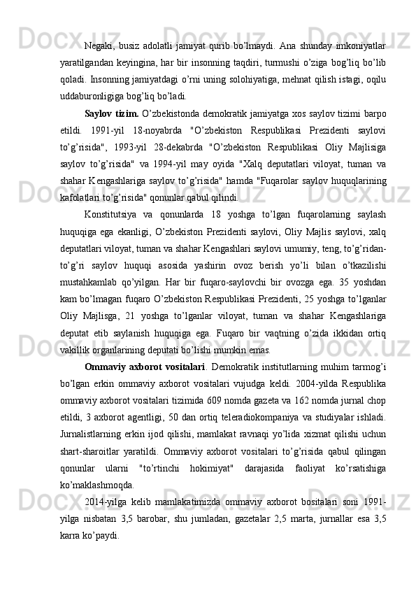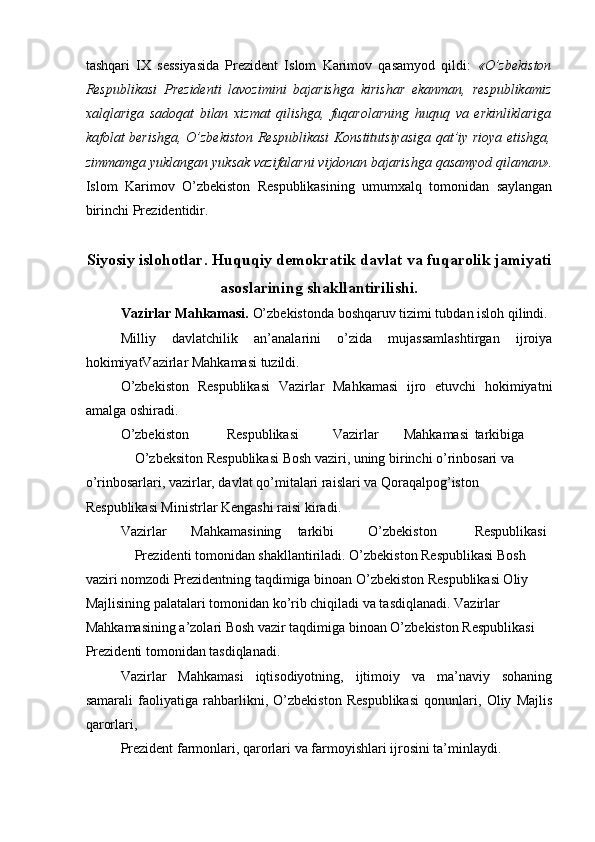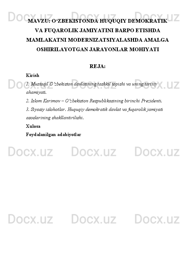 3. Siyosiy islohotlar. Huquqiy demokratik davlat va fuqarolik jamiyati asoslarining shakllantirilishi.