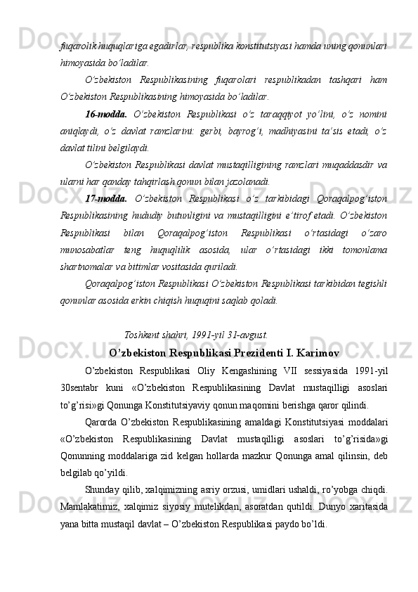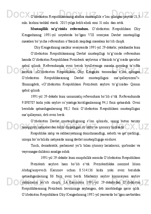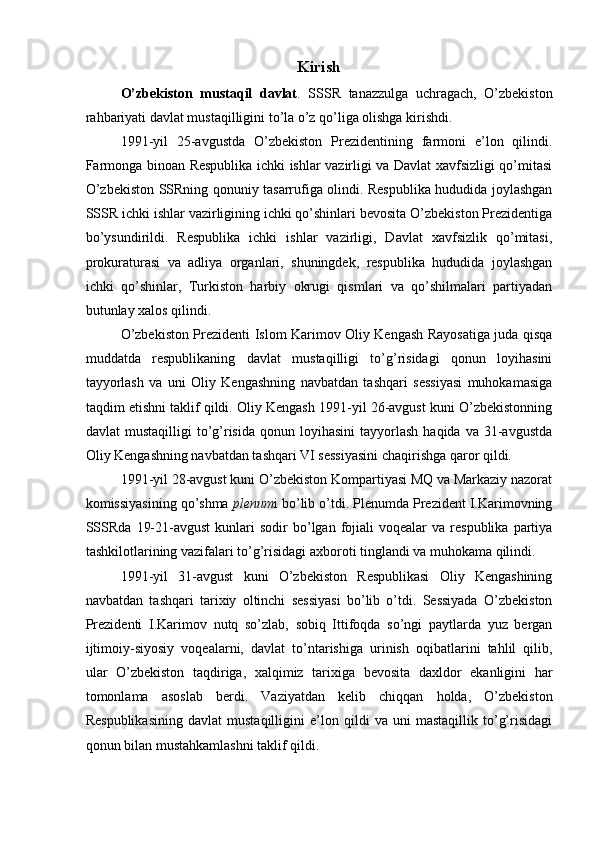 1. Mustaqil O’zbekiston davlatining tashkil topishi va uning tarixiy ahamiyati.