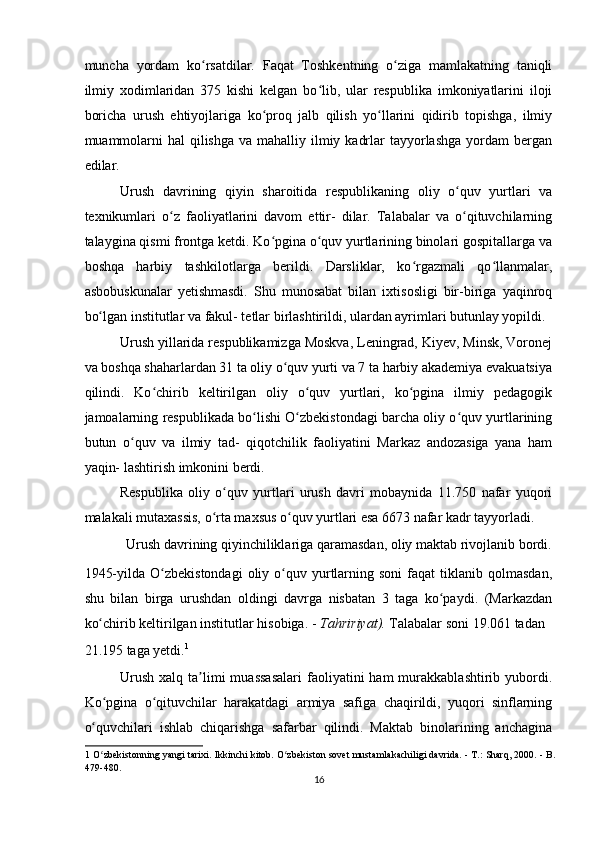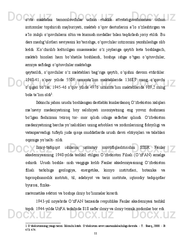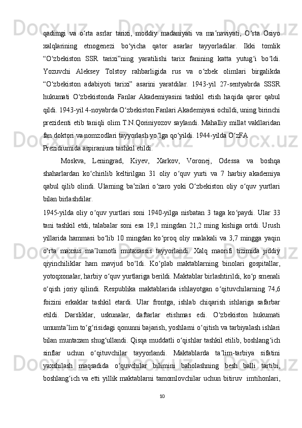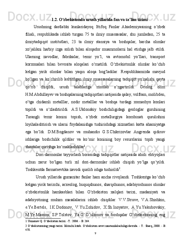 Oʻzbekistonda ikkinchi jahon urushida fan va madaniyat
