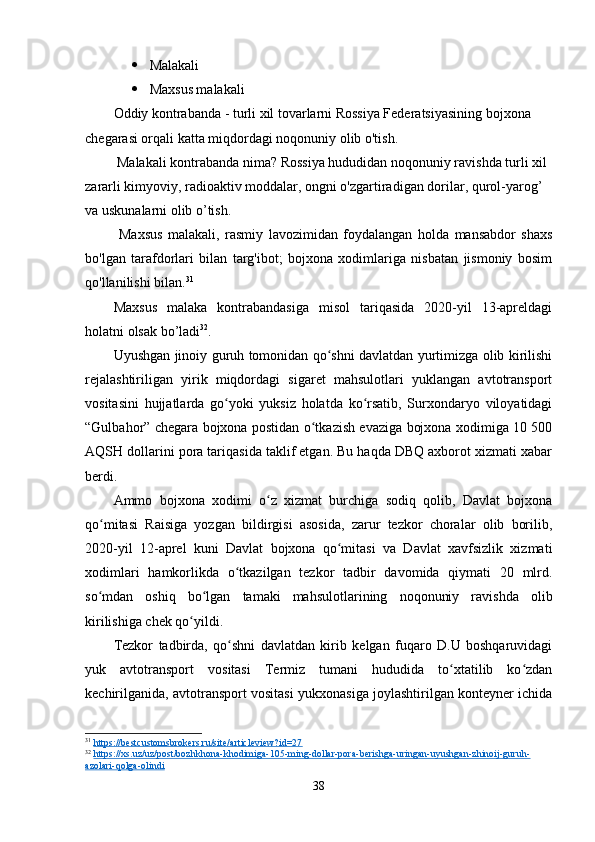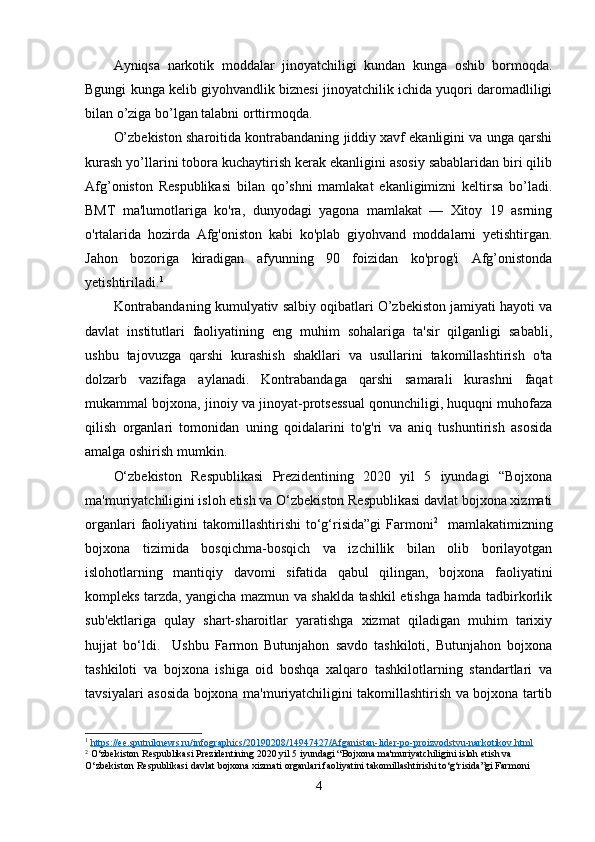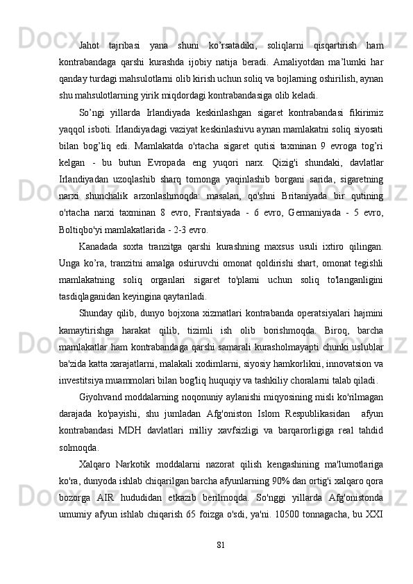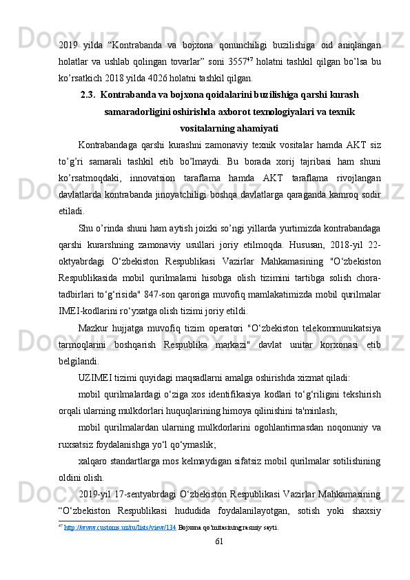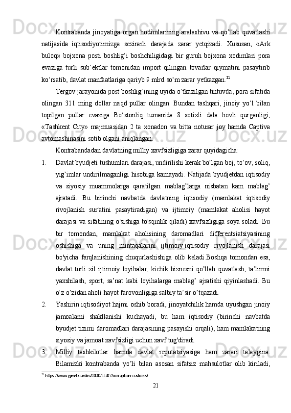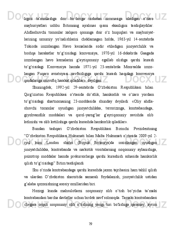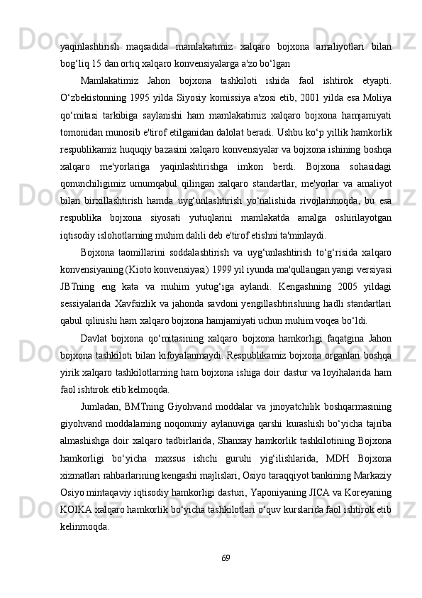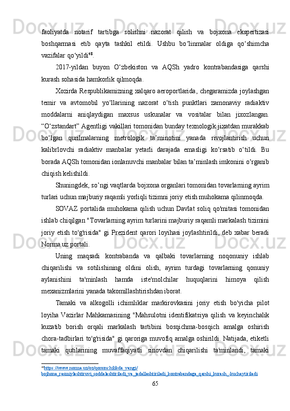 O’zbekistonda kontrabanda va bojxona ishiga oid qonunlarning buzilishiga qarshi kurashishda xalqaro hamkorliklar