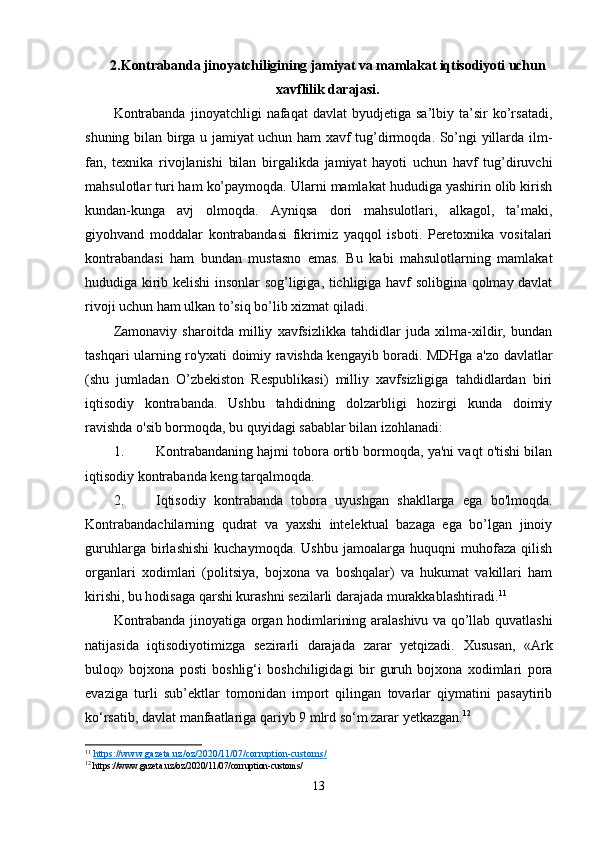 g’ayriqonuniy  olib o’tishnigina kontrabanda deb hisoblash o’rinli bo’ladi. 7