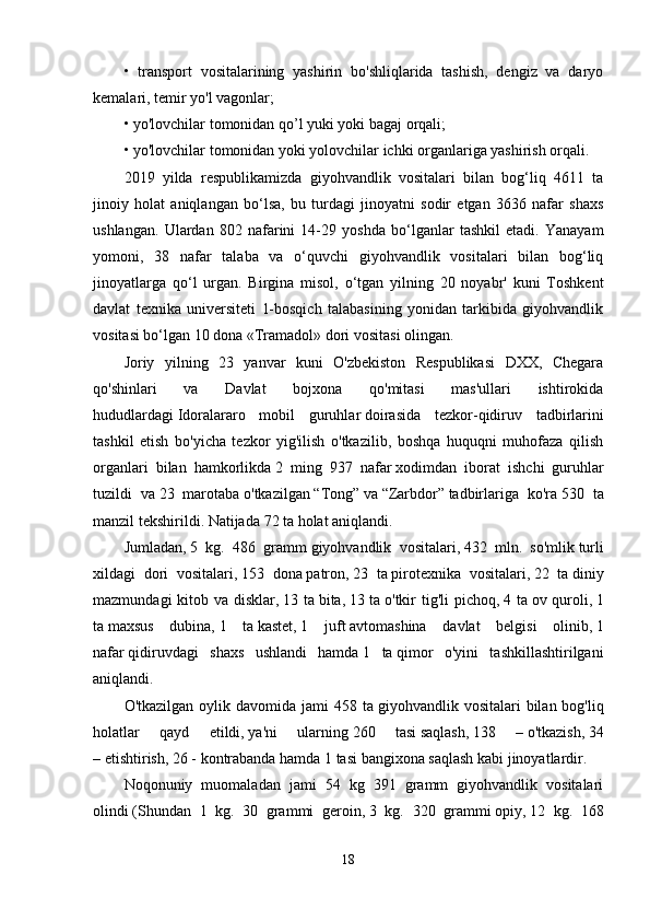 vositalar   olingan.   2020   yilning   8   oyi   ichida   esa   191196   ta   tramadol   yoki