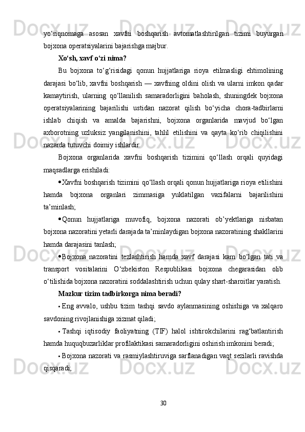 tizimi boshqaruv faoliyatidagi shaffoflikni taminlabgina qolmay, davlat boshqaruv