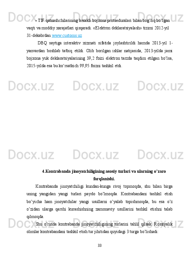 birga salbiy jihatlari ham mavjud bo’lib, ularning bojxona sohasida sodir etiladigan