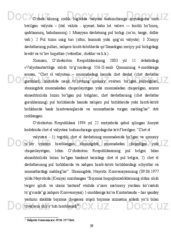 turlari   bo’yicha   amaldagi   qonunchilikka  o’zgartirishlar  kiritish.   Xususan  “valyuta