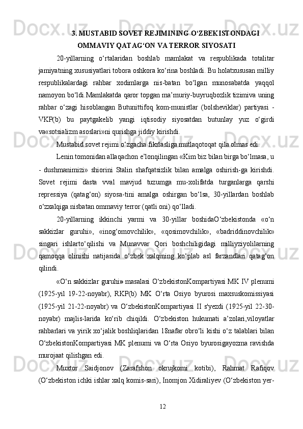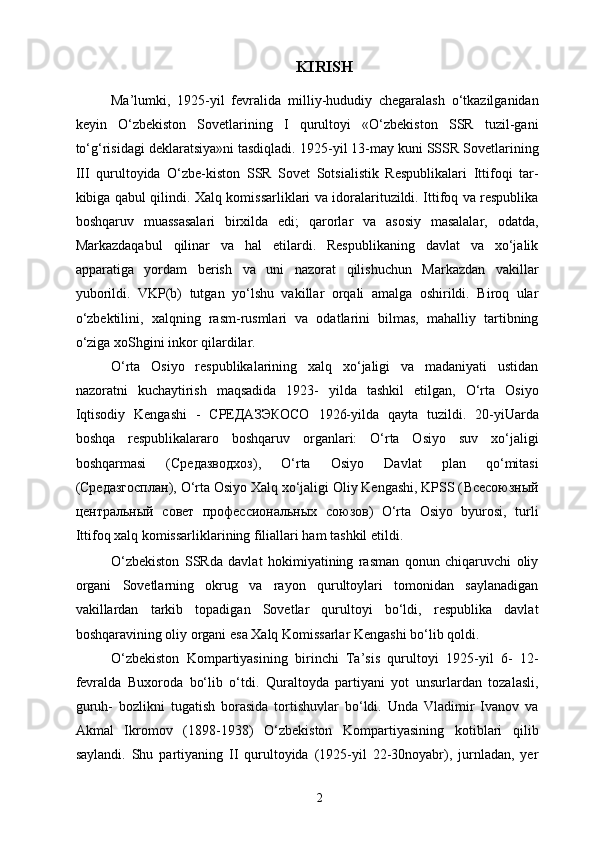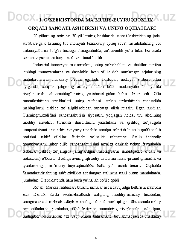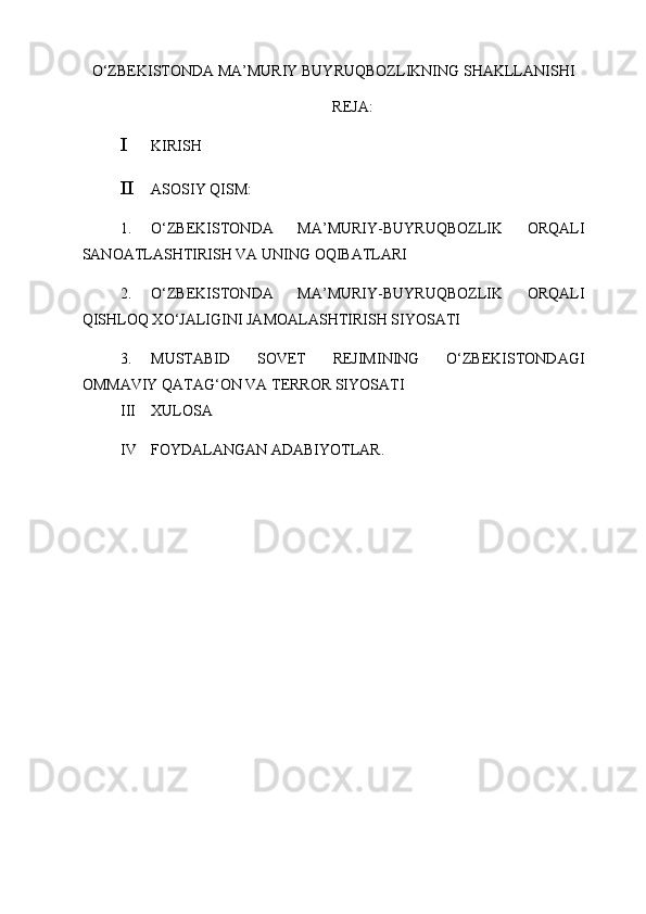 O‘ZBEKISTONDA MA’MURIY BUYRUQBOZLIKNING SHAKLLANISHI
