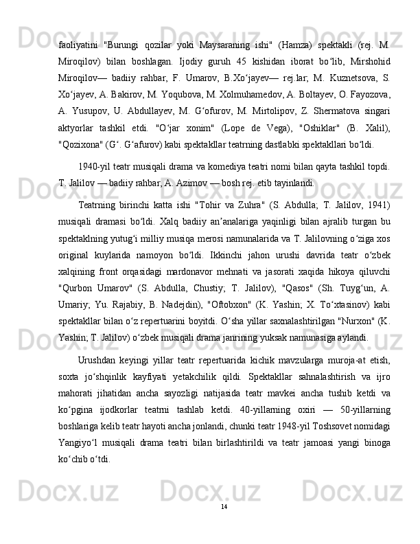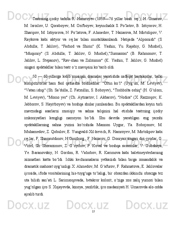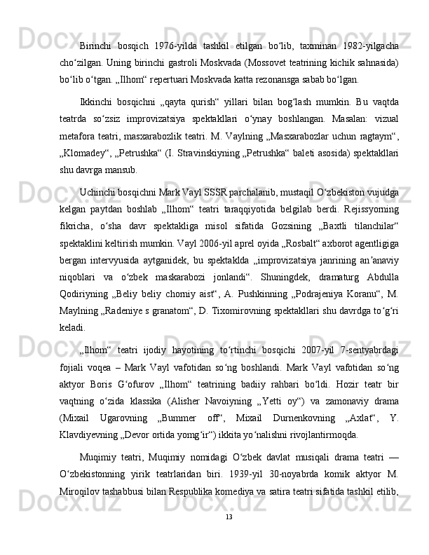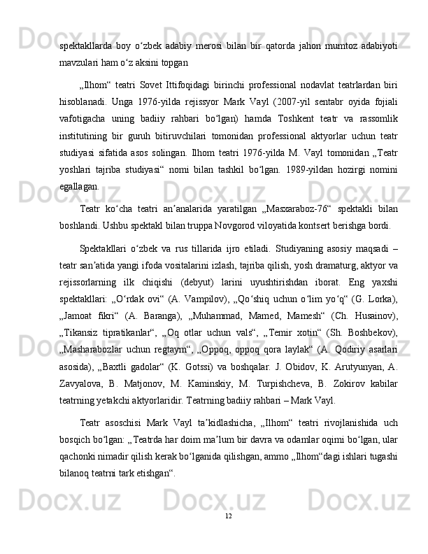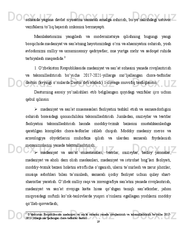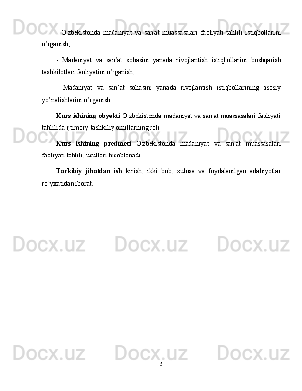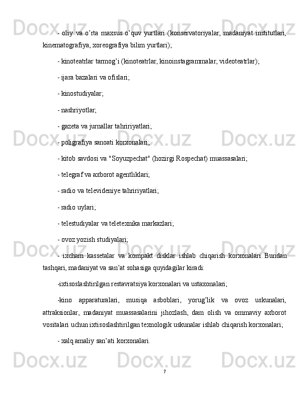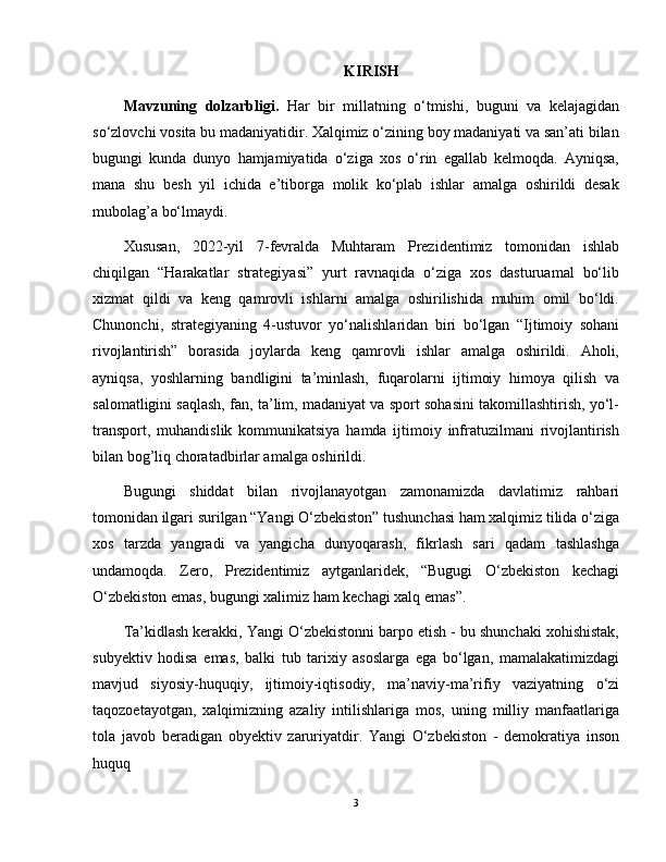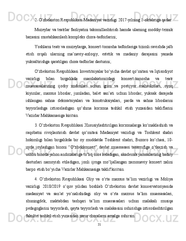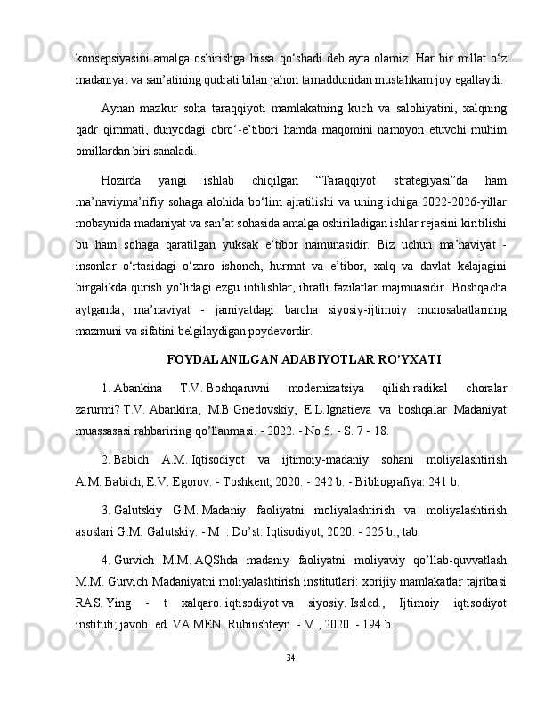 O’zbekistonda madaniyat va san'at muassasalari faoliyati tahlili 34 bet