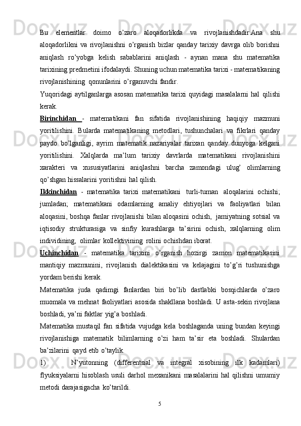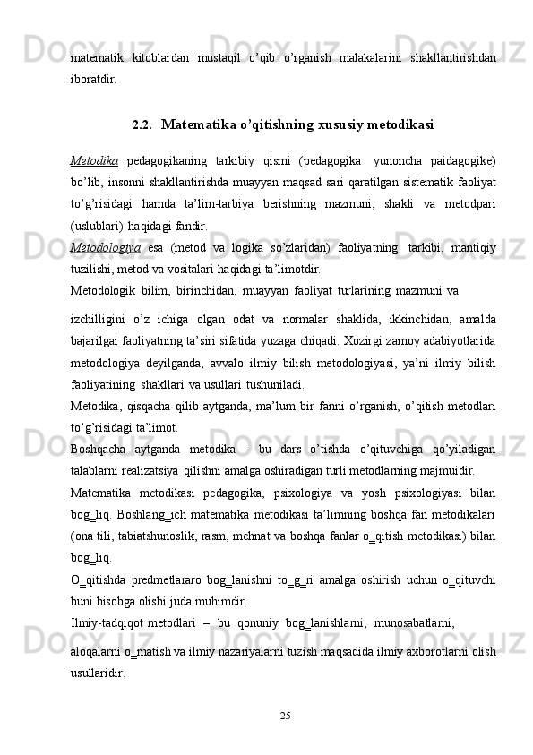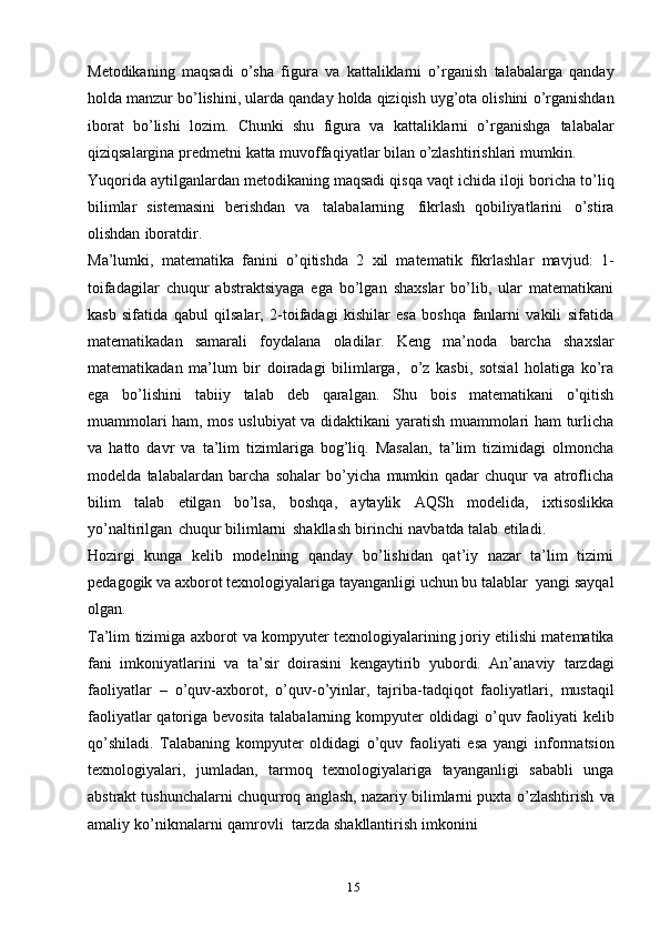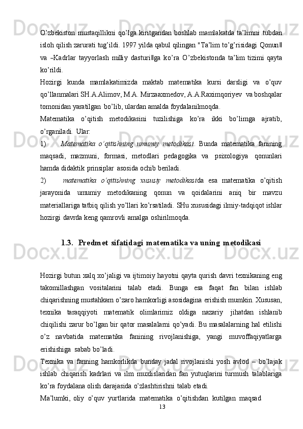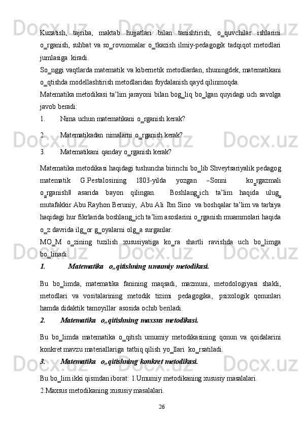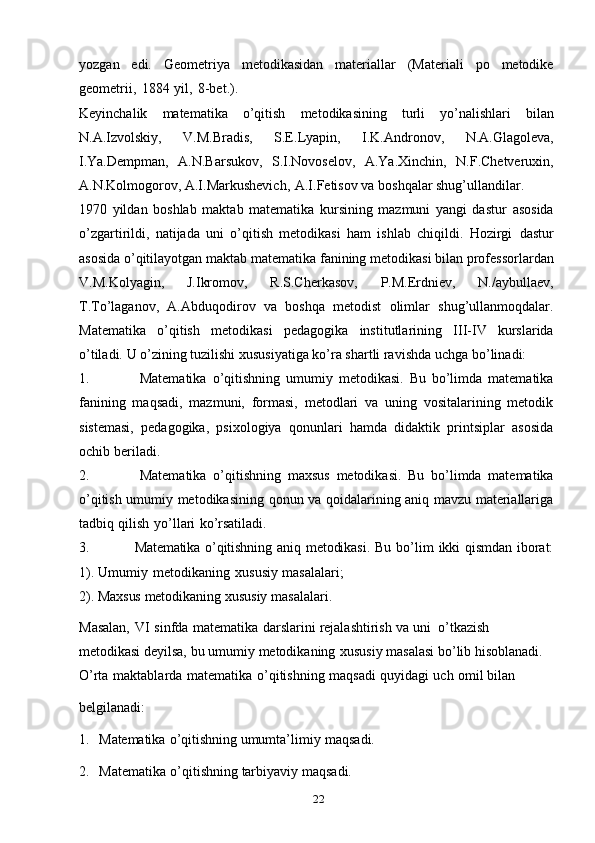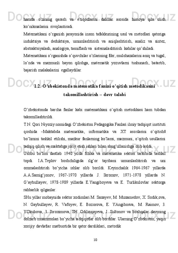 O’zbekistonda matematika fanini o’qitish metodikasi tarixi va rivojlanishi