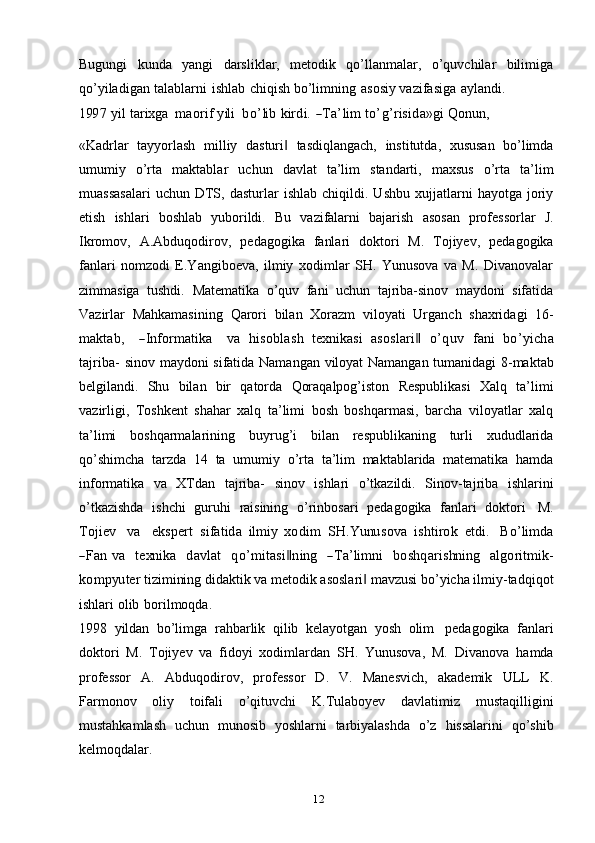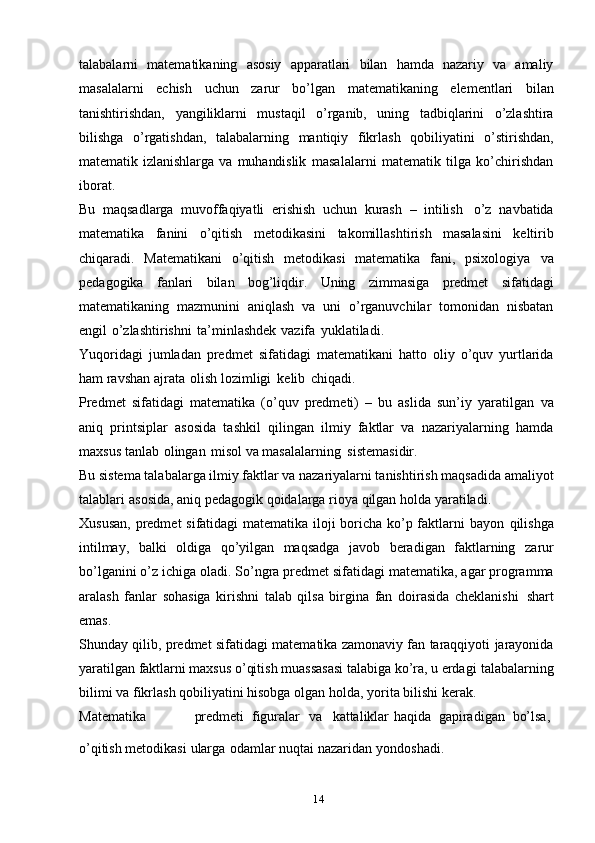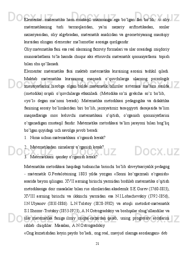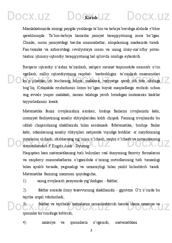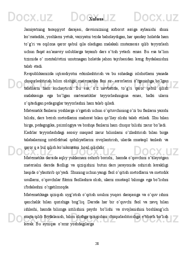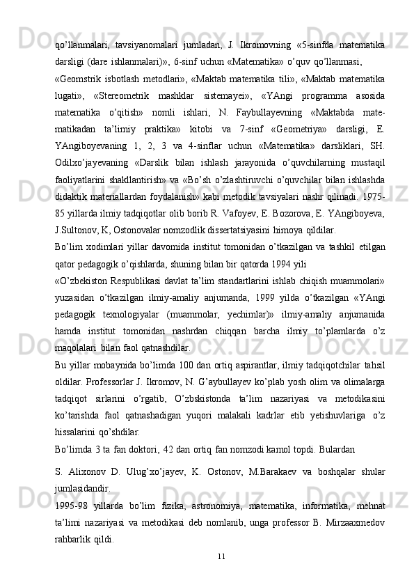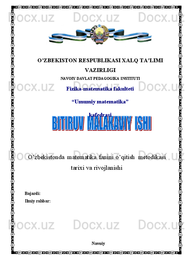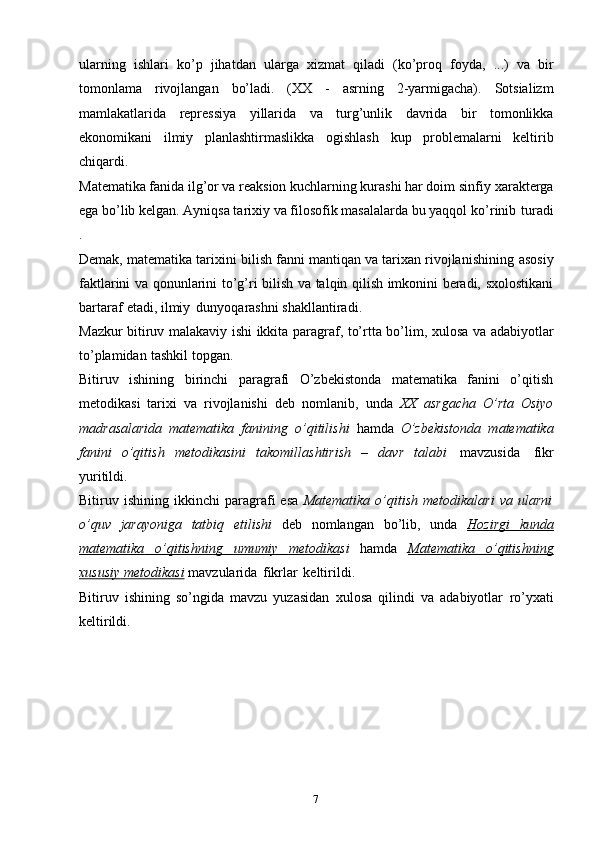 O’zbekistonda matematika fanini o’qitish metodikasi tarixi va rivojlanishi