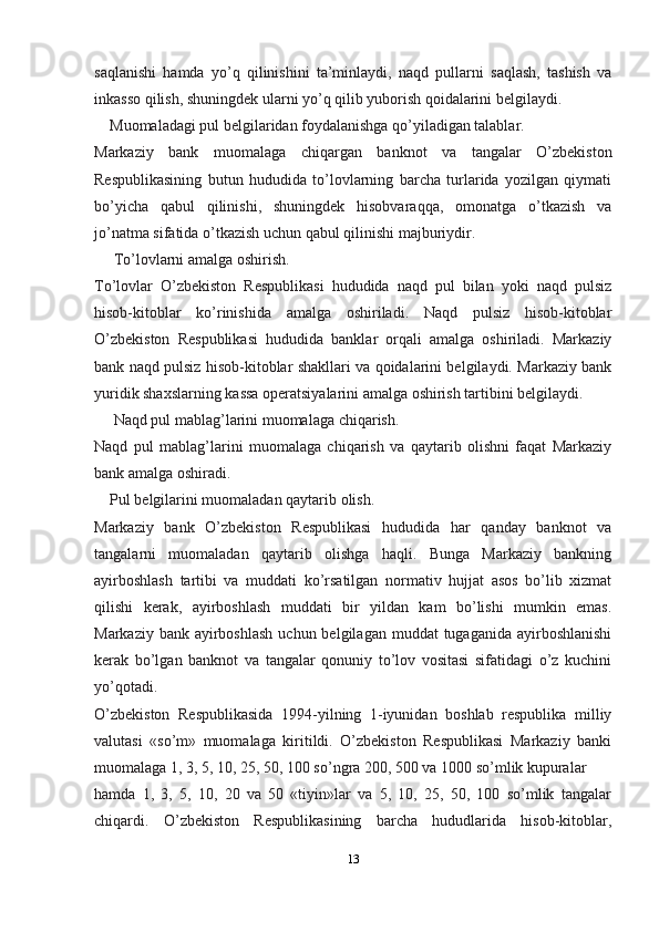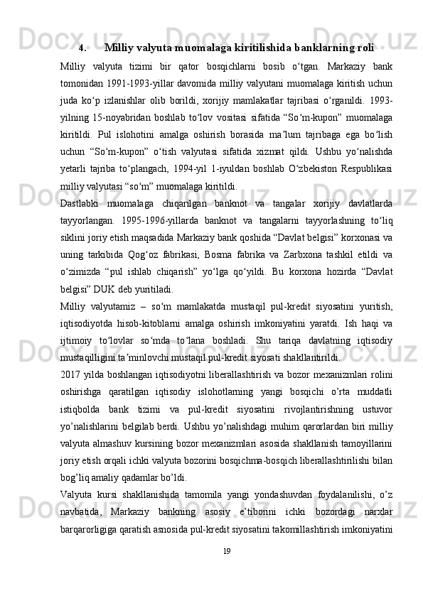 O’zbekistonda milliy valyutaning muomalaga kiritilishi va uning mamlakat iqtisodiyotiga ta'siri