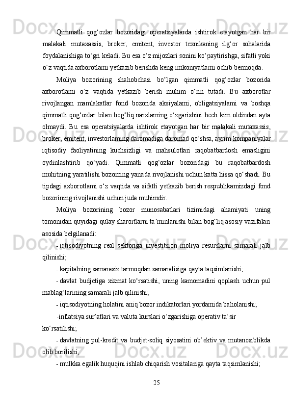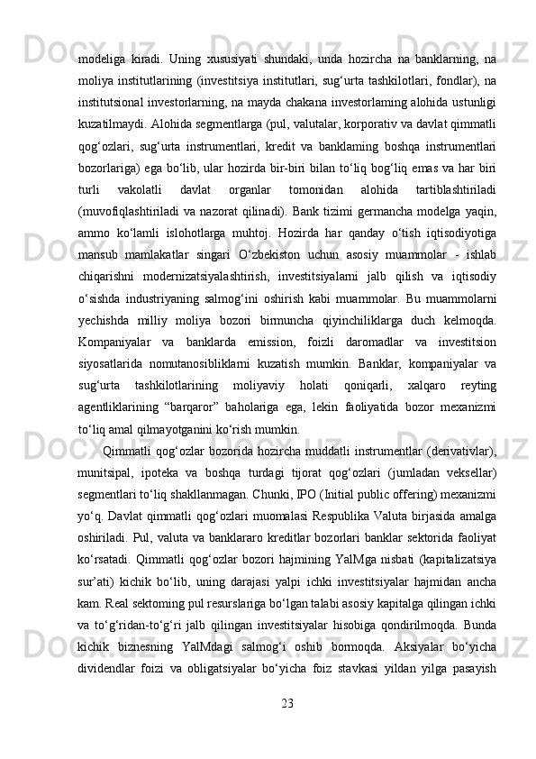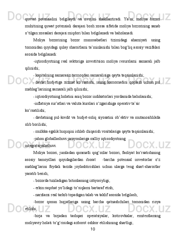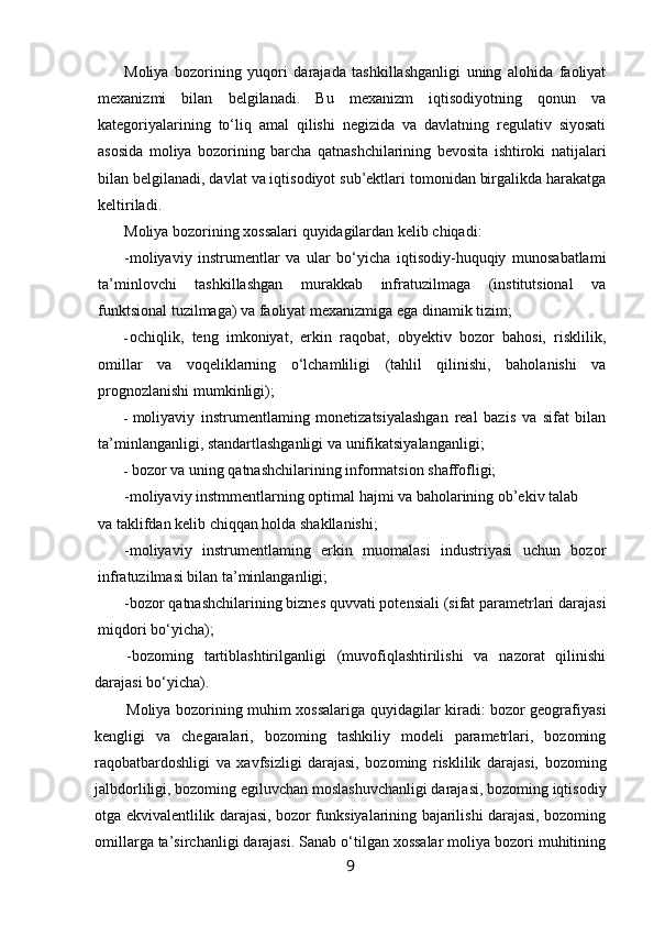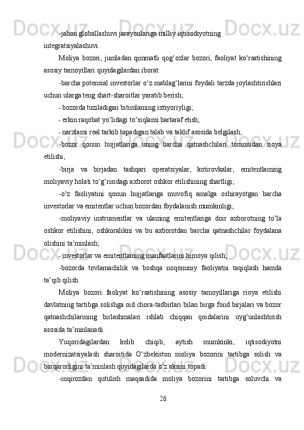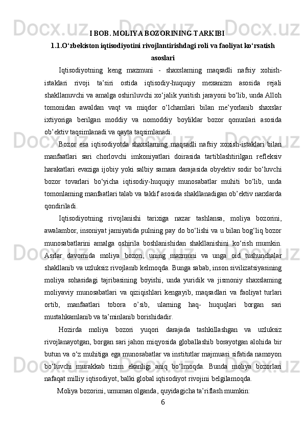 O’zbekistonda moliya bozorining shakllanishi va rivojlanishi