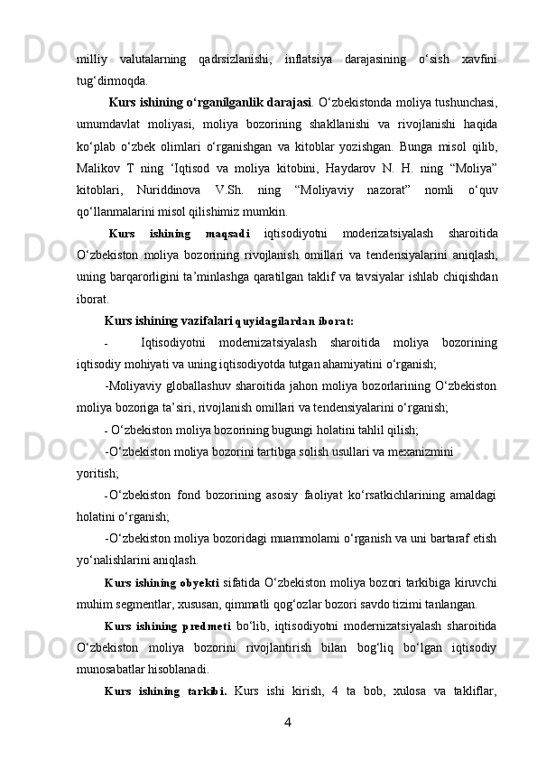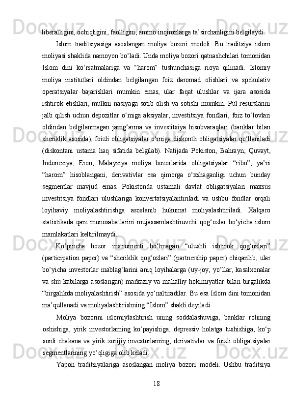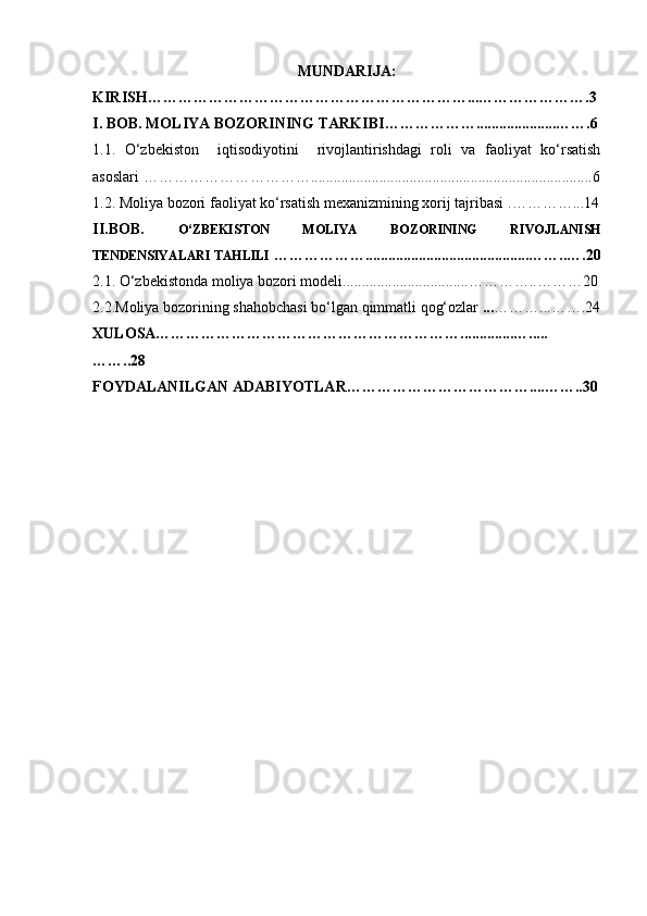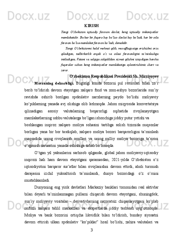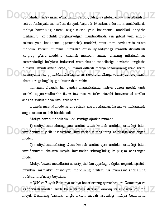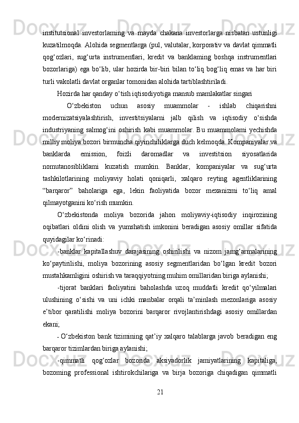 O’zbekistonda moliya bozorining shakllanishi va rivojlanishi