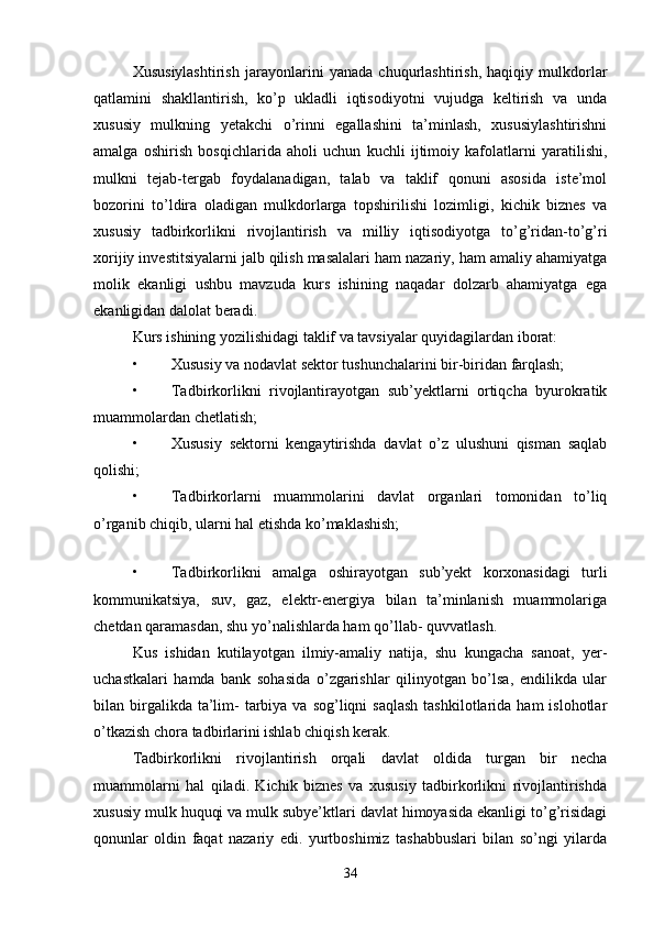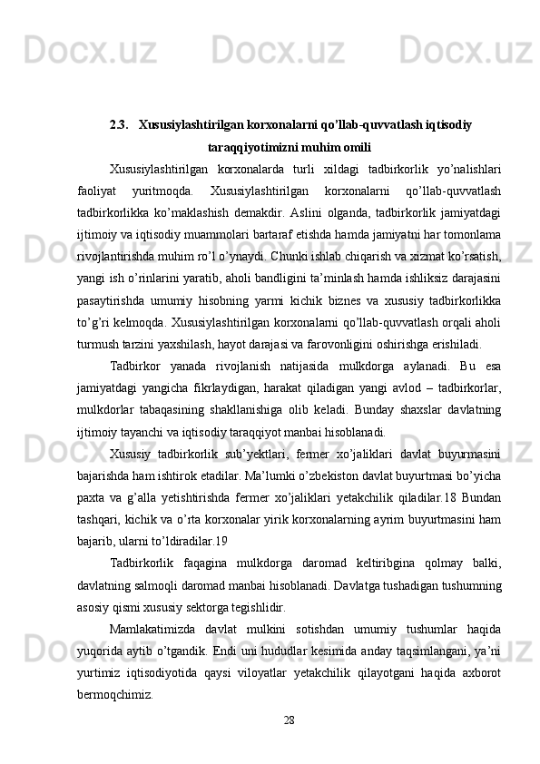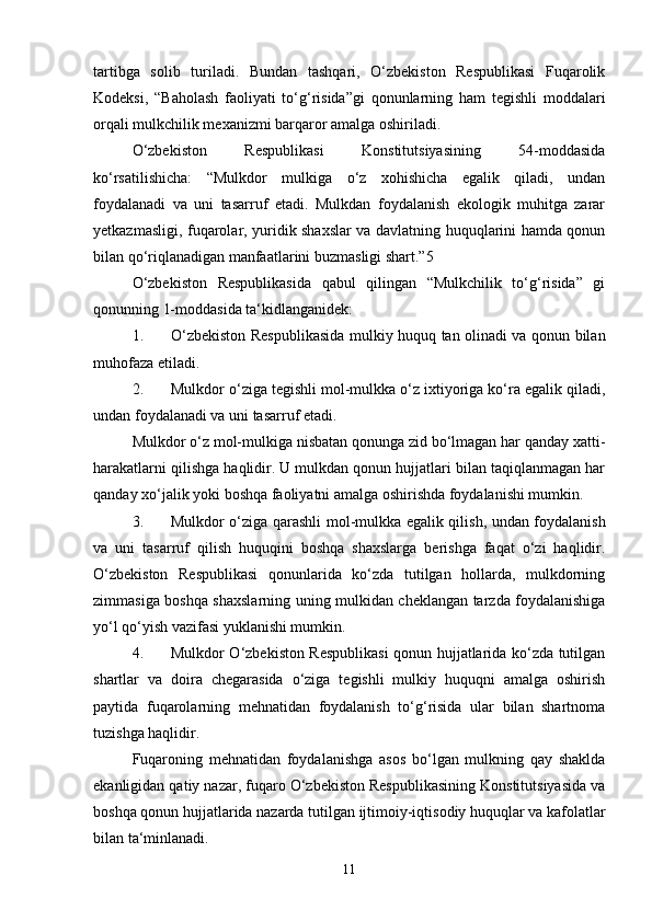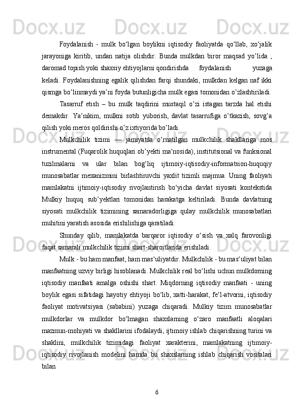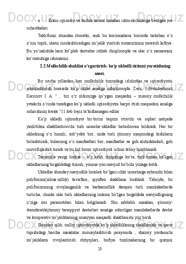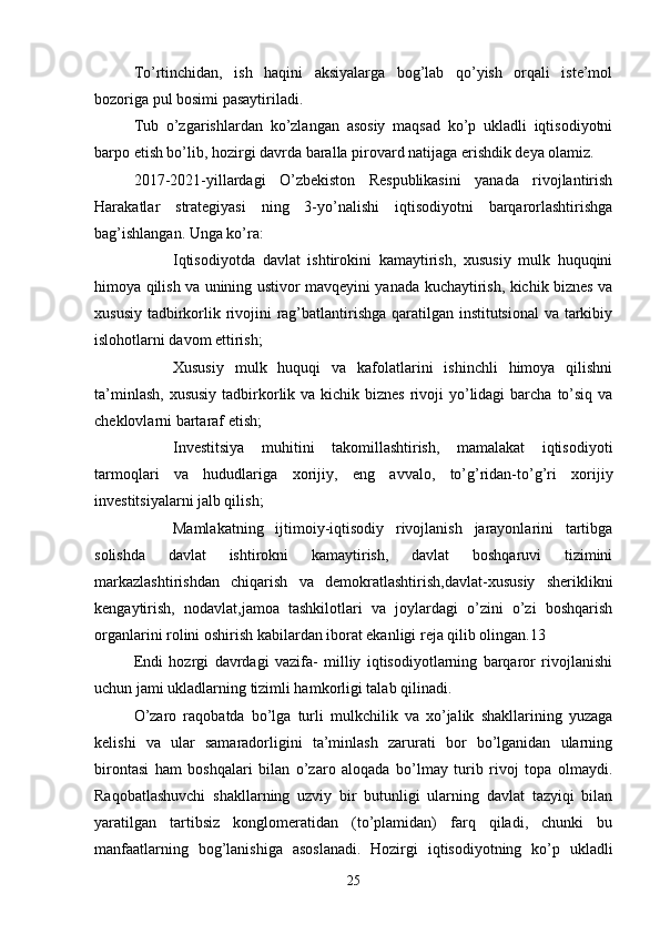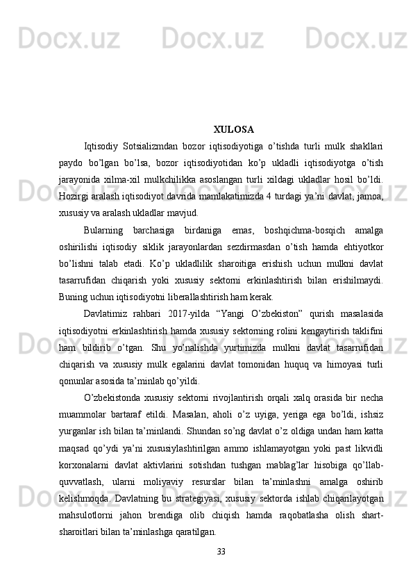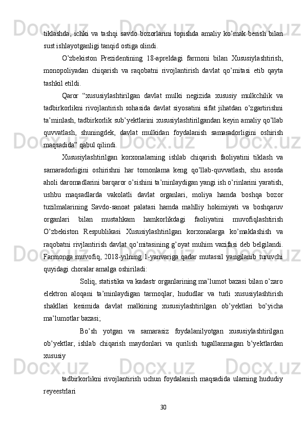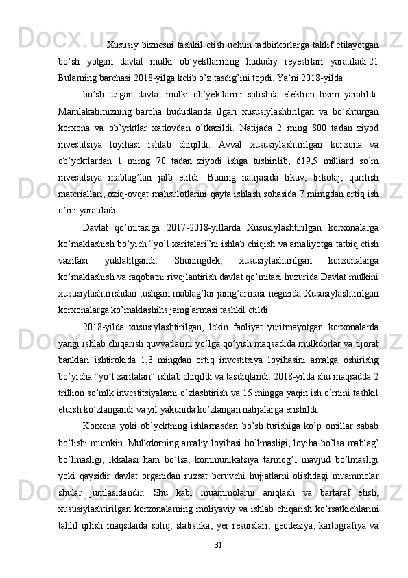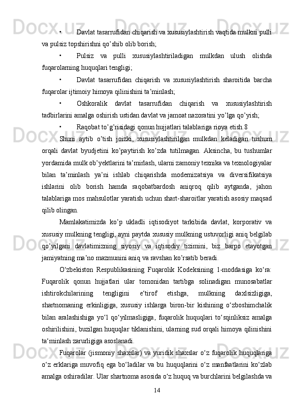 O'zbekistonda mulkni davlat tasarrufidan chiqarish