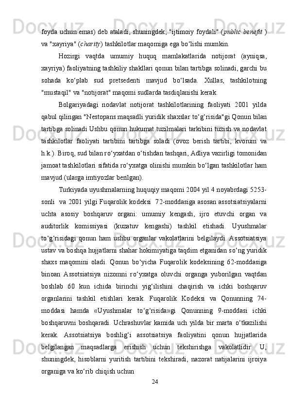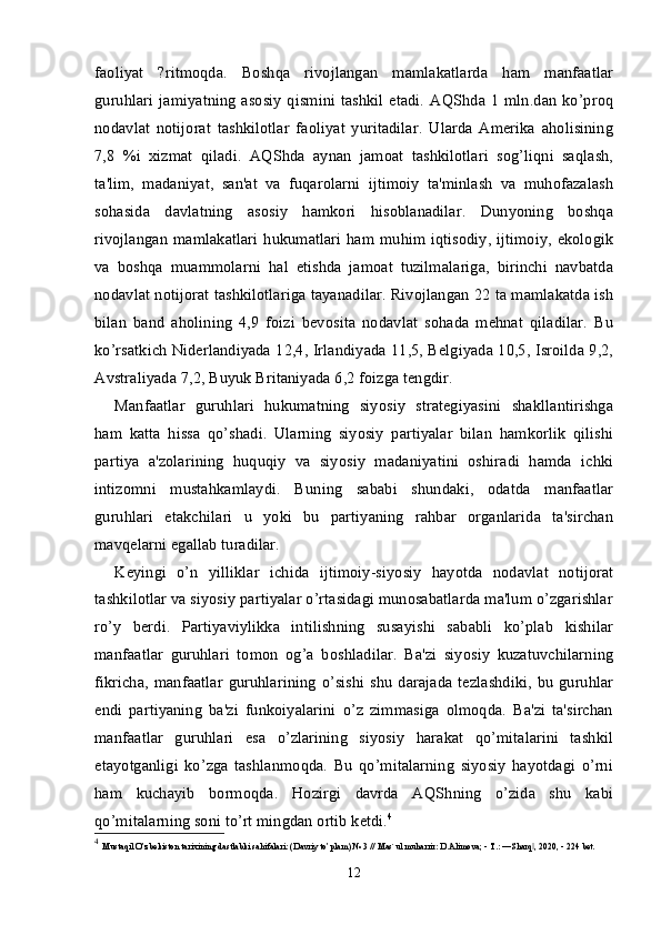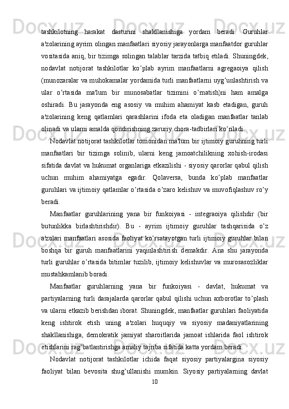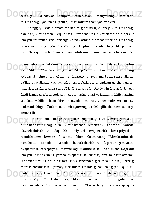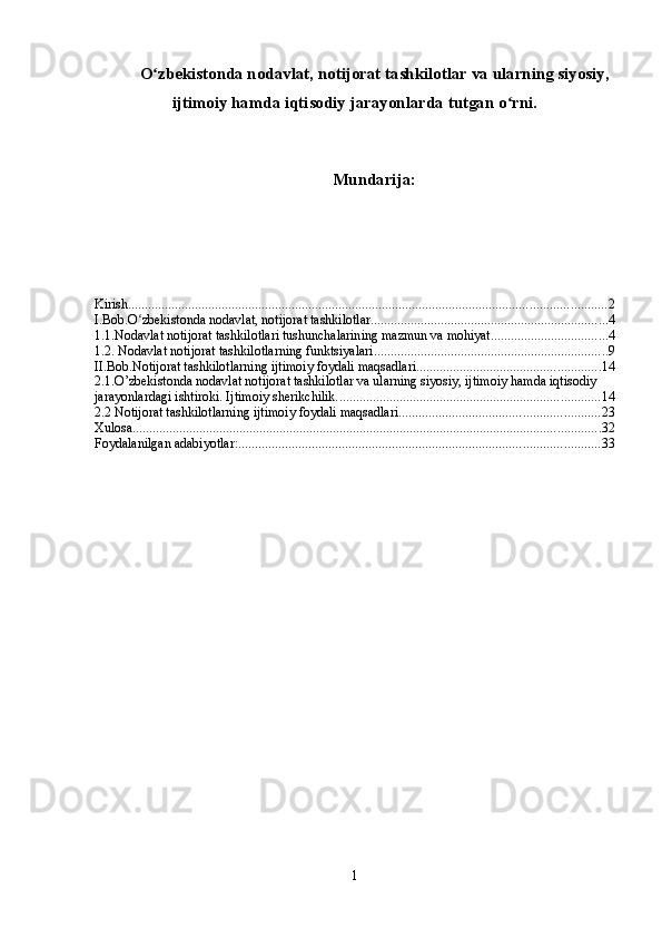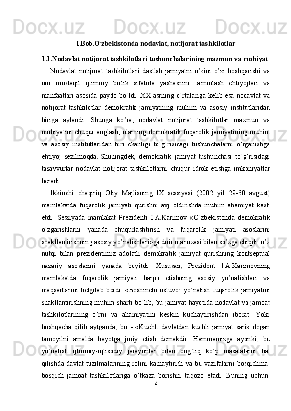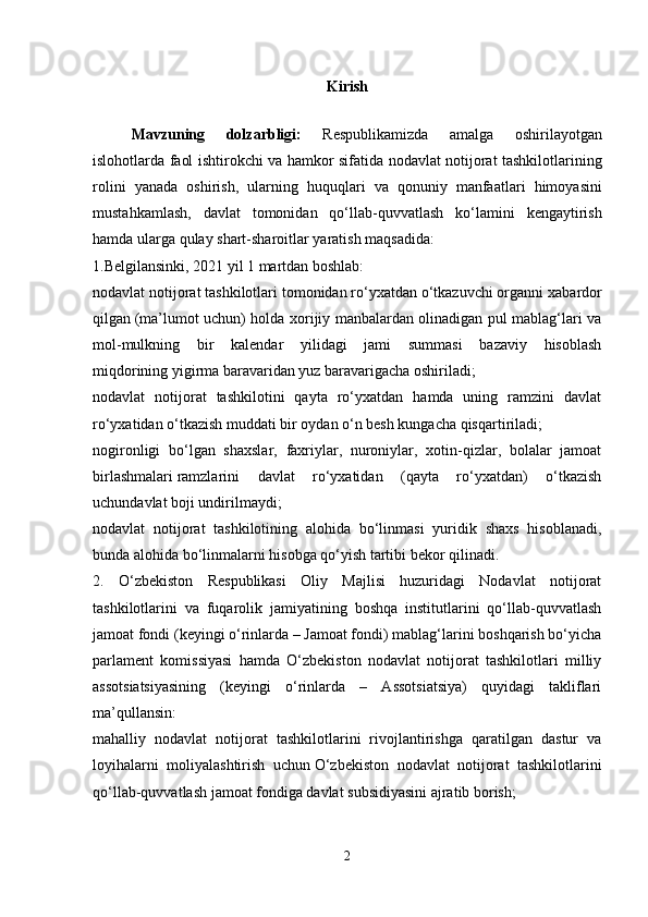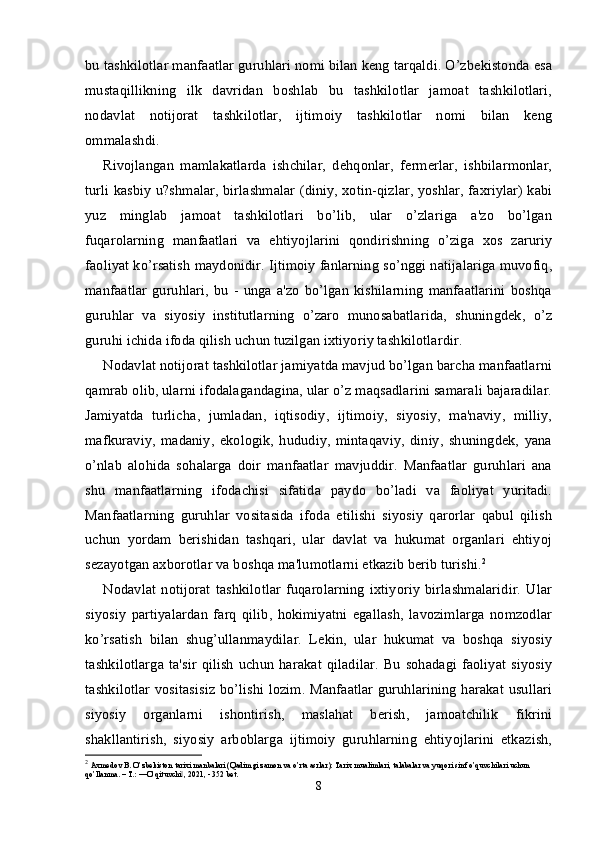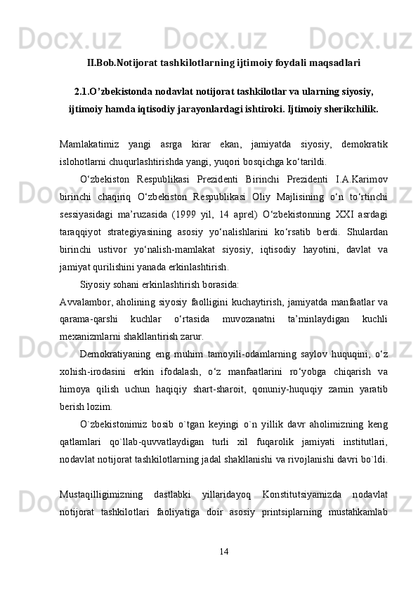 Oʻzbekistonda nodavlat, notijorat tashkilotlar va ularning siyosiy, ijtimoiy hamda iqtisodiy jarayonlarda tutgan oʻrni.