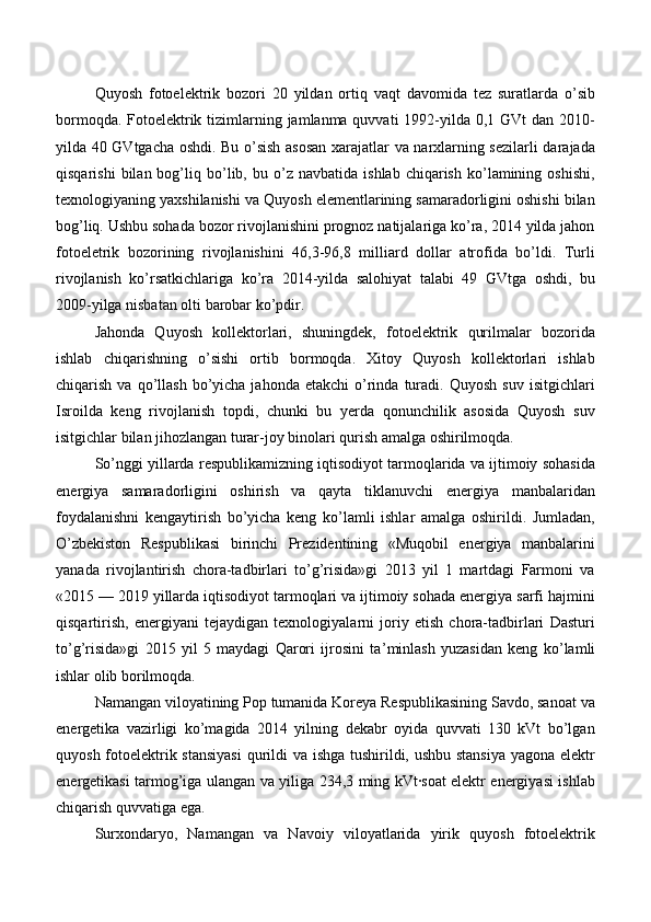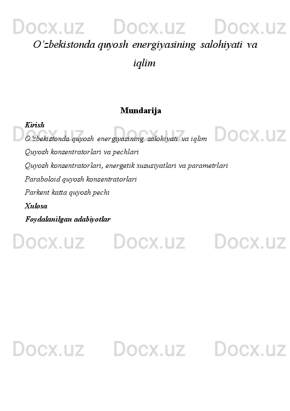 O’zbekistonda quyosh energiyasining salohiyati va iqlim