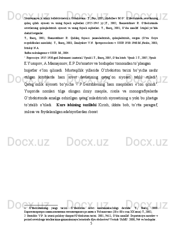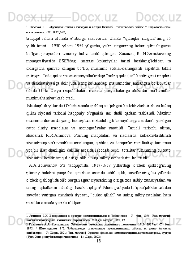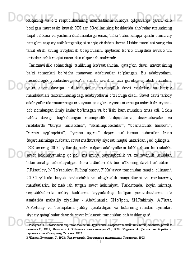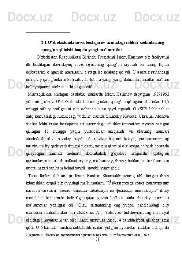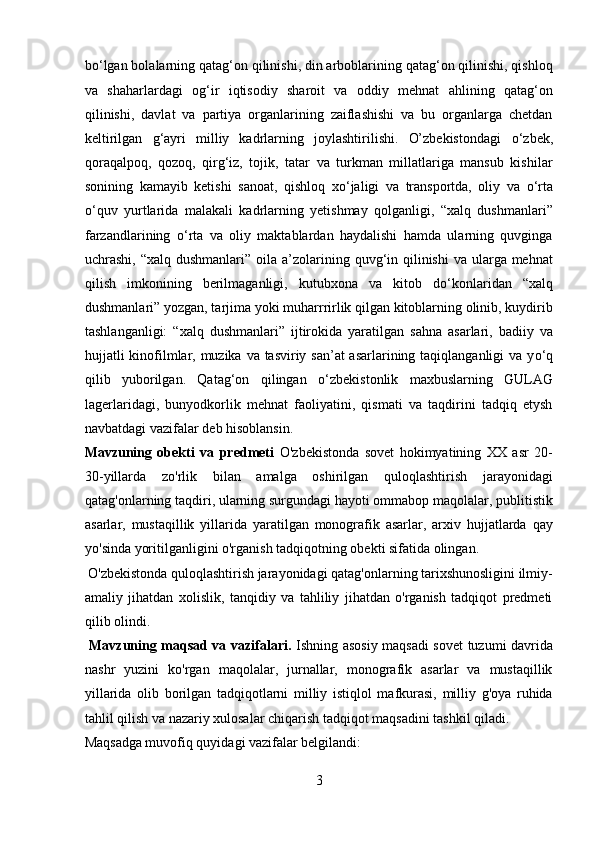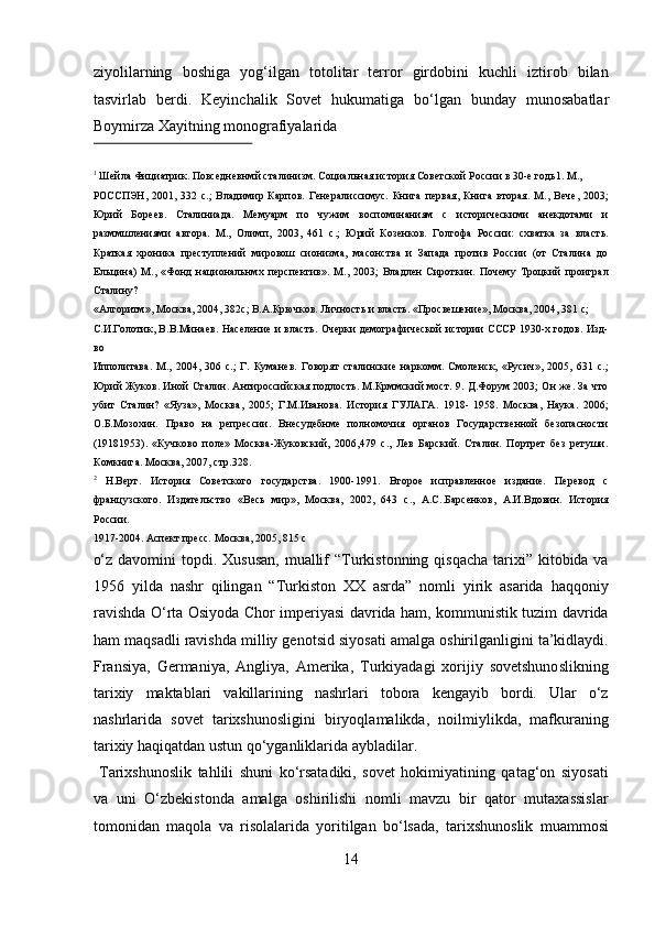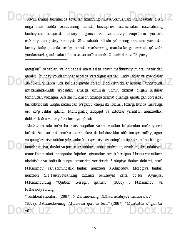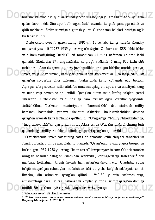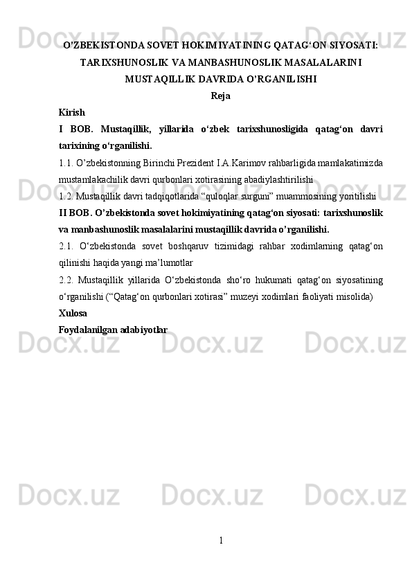 O’zbekistonda sovet hokimiyatining qatag‘on siyosati: tarixshunoslik va manbashunoslik masalalarini mustaqillik davrida o’rganilishi