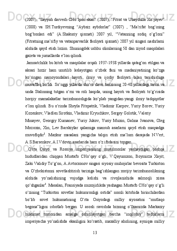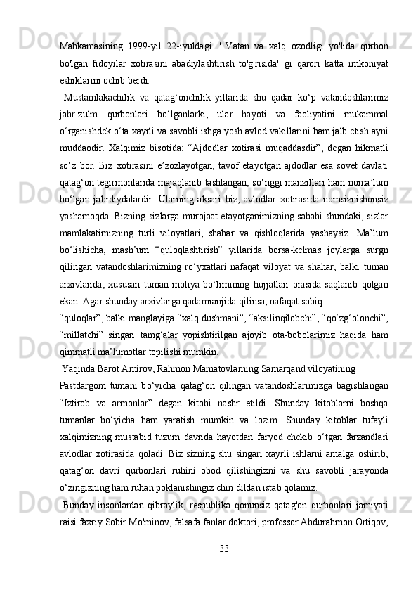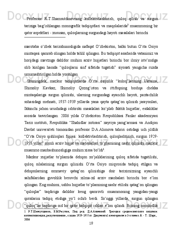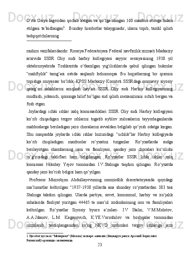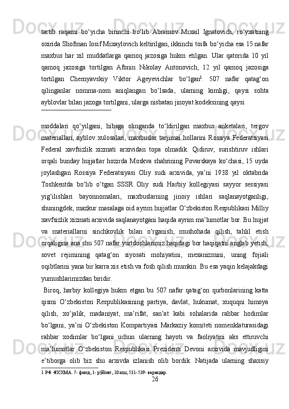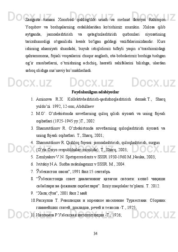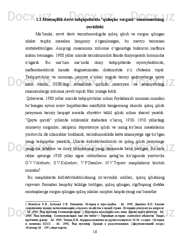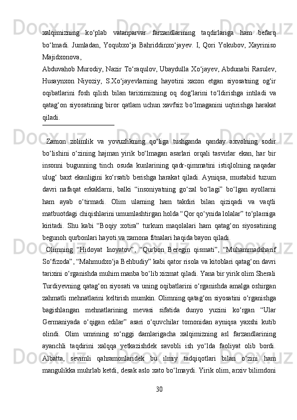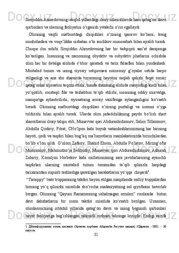 O’zbekistonda sovet hokimiyatining qatag‘on siyosati: tarixshunoslik va manbashunoslik masalalarini mustaqillik davrida o’rganilishi