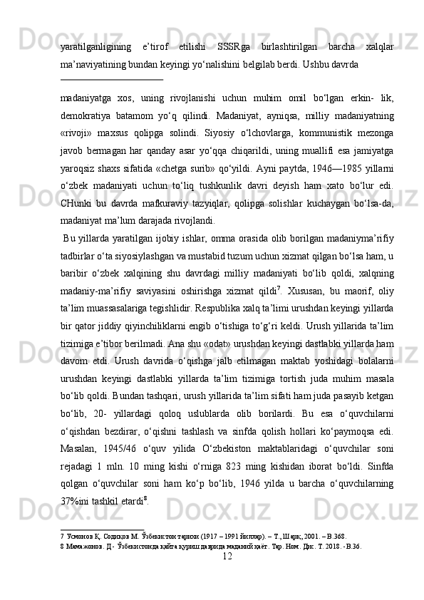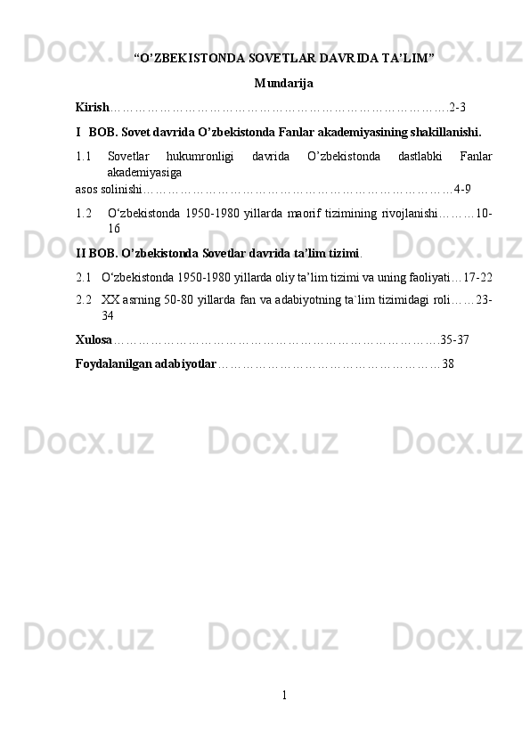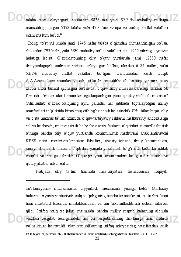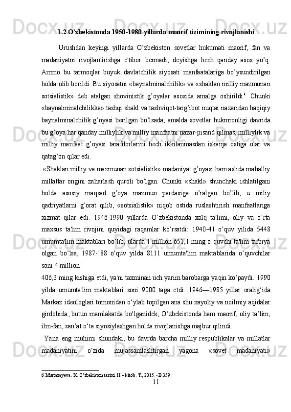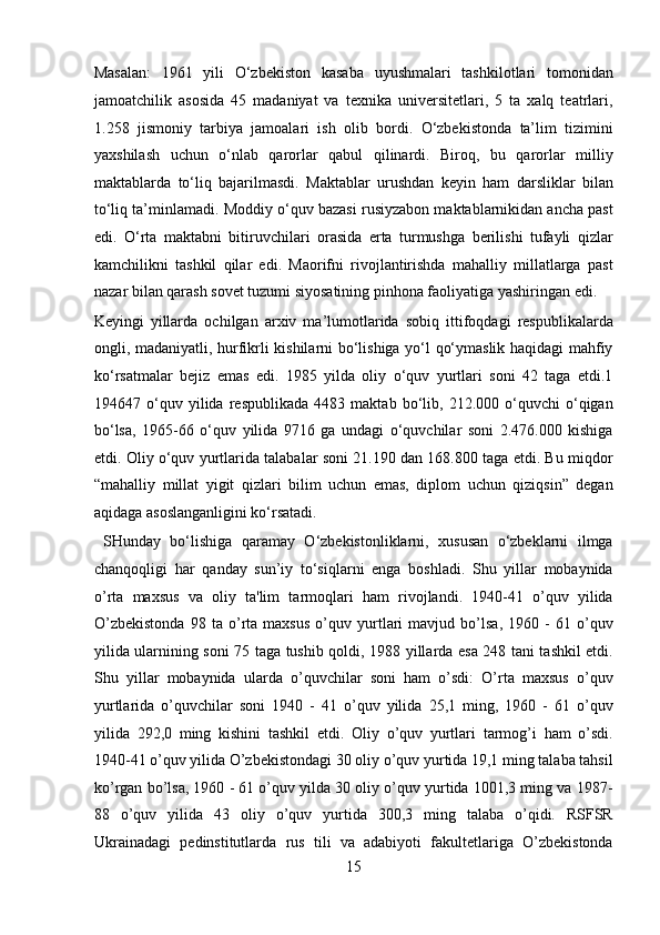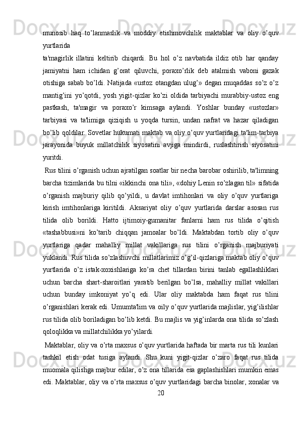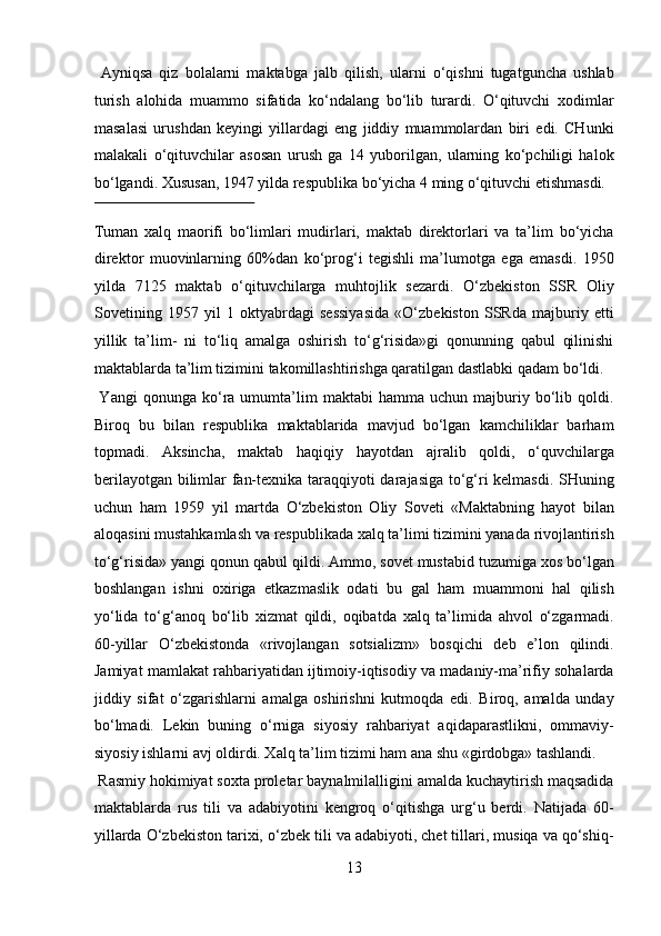 O’zbekistonda Sovetlar davrida ta’lim tizimi haqida