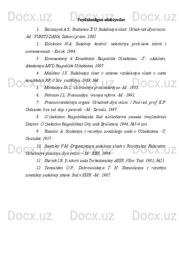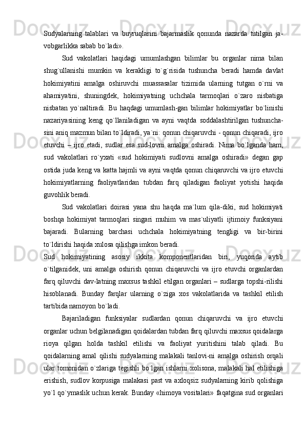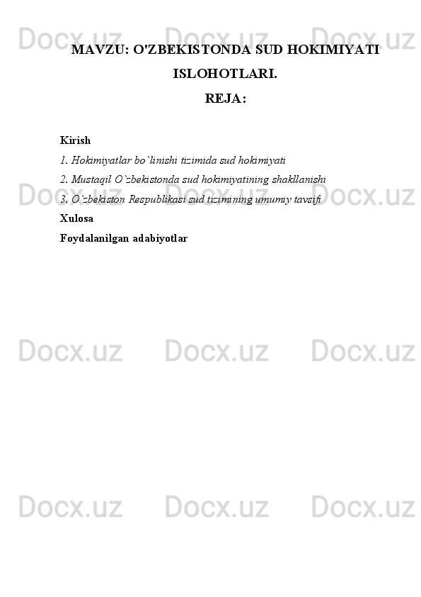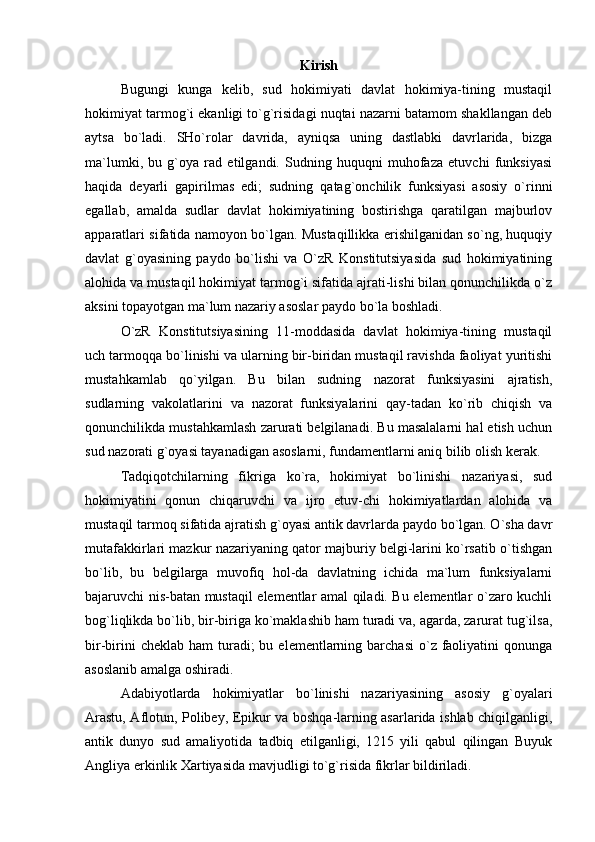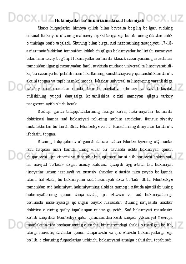 1. Hokimiyatlar bo`linishi tizimida sud hokimiyati