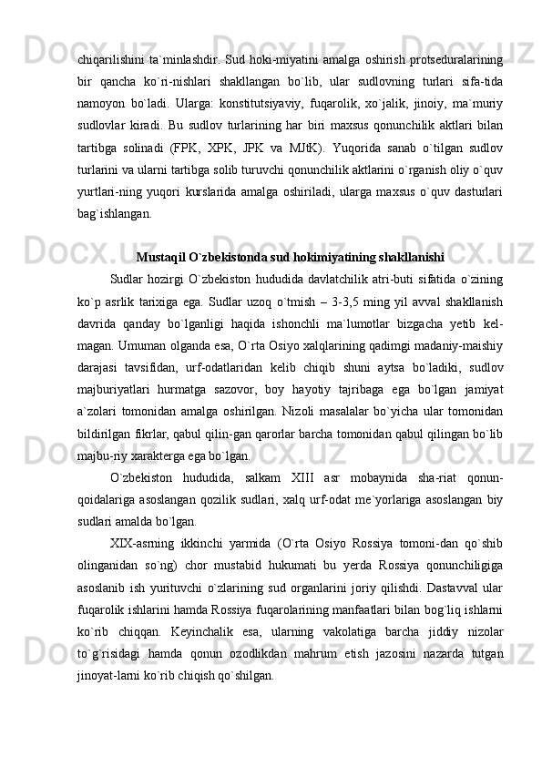 2. Mustaqil O`zbekistonda sud hokimiyatining shakllanishi