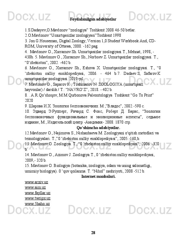 Foydalanilgan adabiyotlar ……………………………………………….27