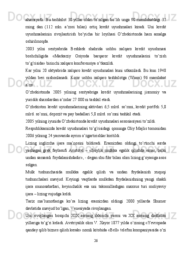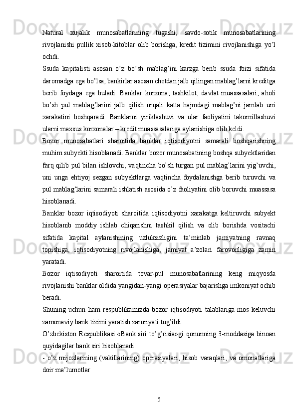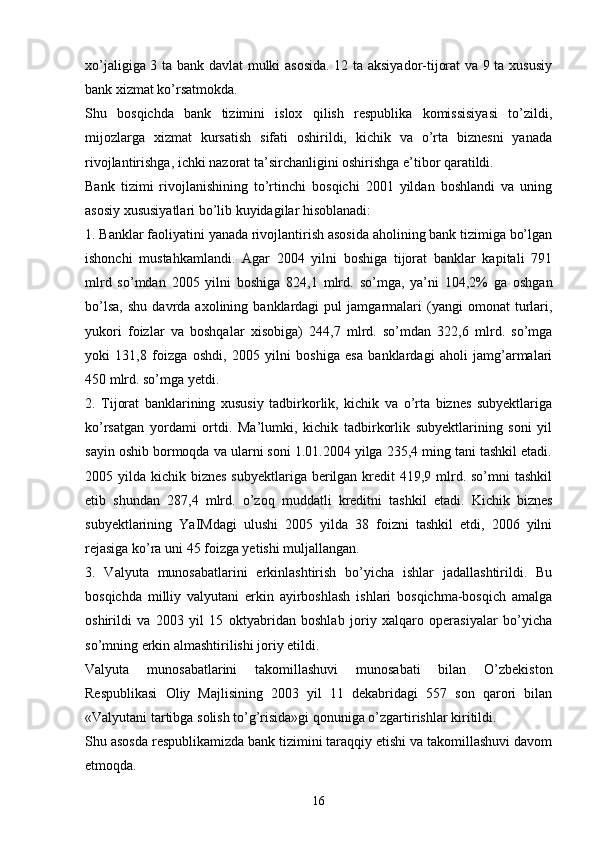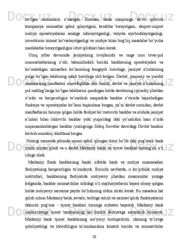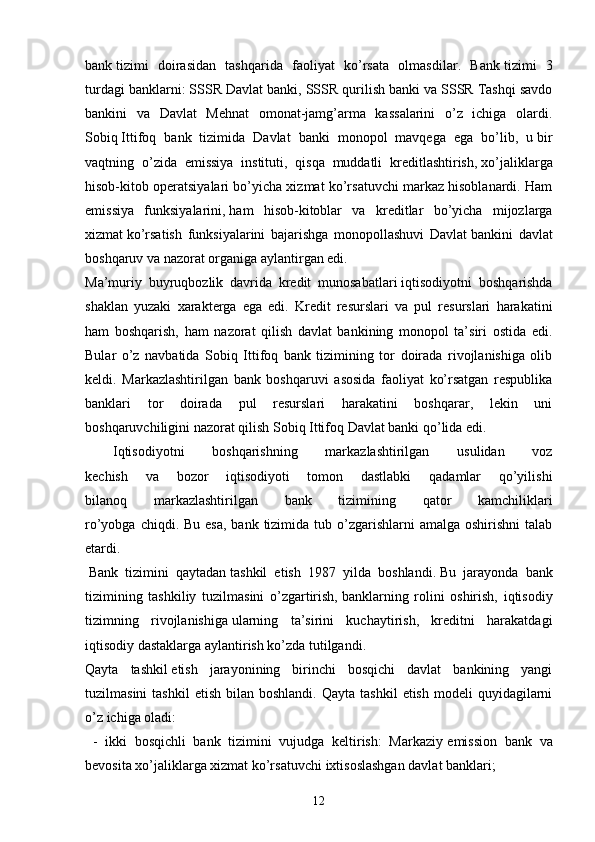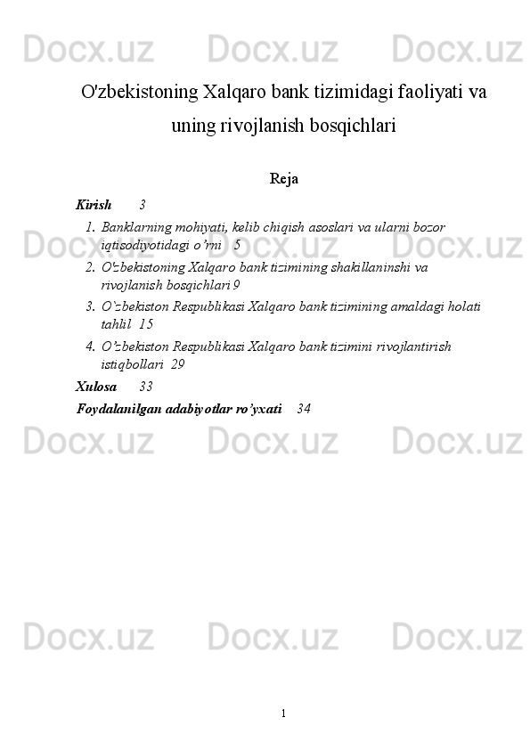 O'zbekistoning Xalqaro bank tizimidagi faoliyati va uning rivojlanish bosqichlari