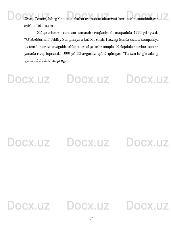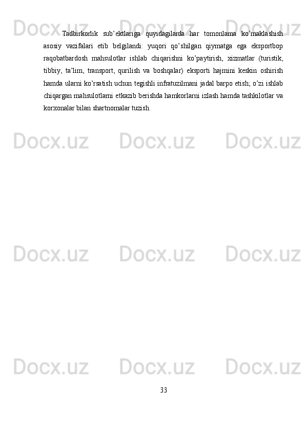 hamda ularni ko’rsatish uchun tegishli infratuzilmani jadal barpo etish; o’zi ishlab