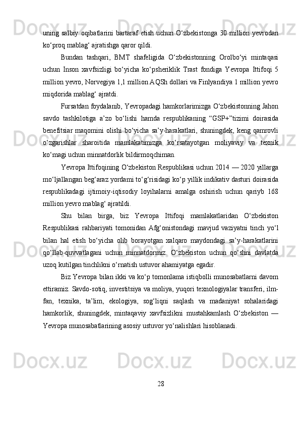 2.2.   O‘zbekistonning   Yevropa   mamlakatlari   va   xalqaro   tashkilotlar   bilan   o‘zaro