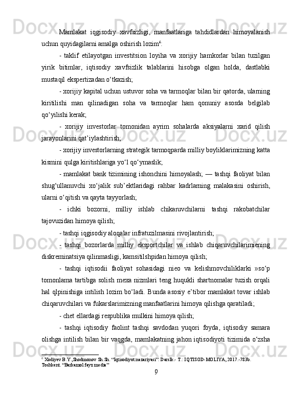 faoliyatiga   xavf   tutalishi,   importga,   xalqaro   iqgisodiy   tashkilotlarga   o‘ta   qaram