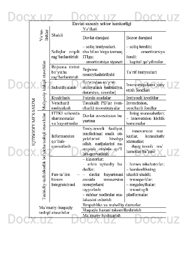 innovatsion jarayonlarni rivojlantirishda xususiy biznes ishtirokini rag‘batlantirish,