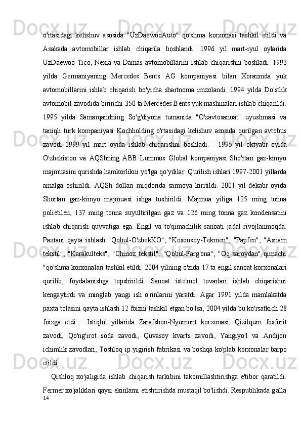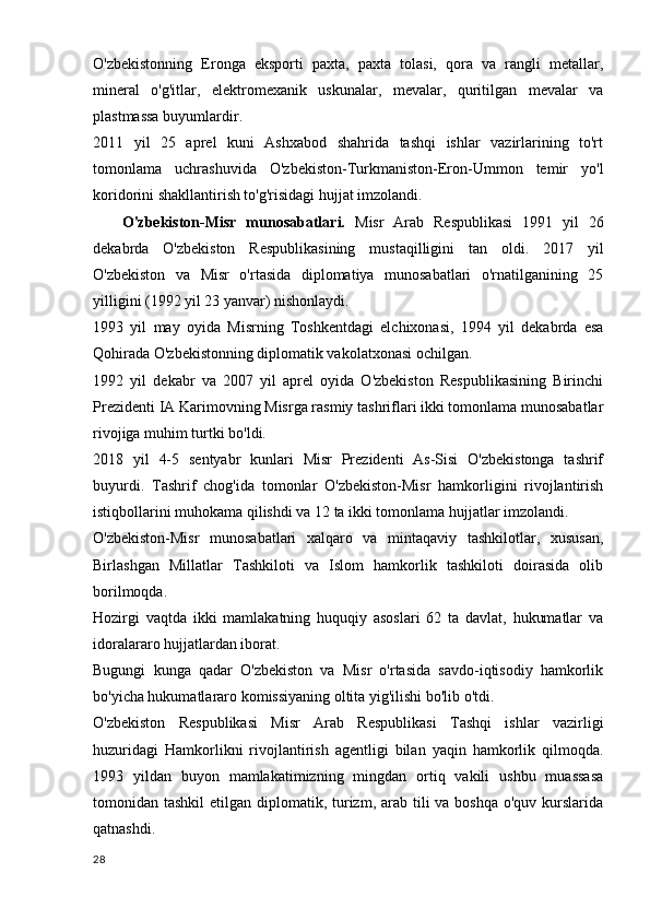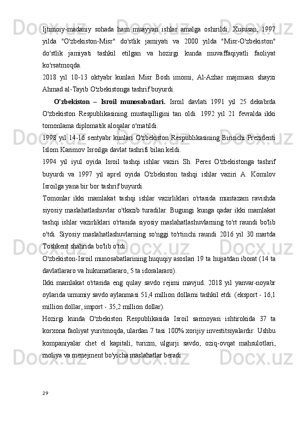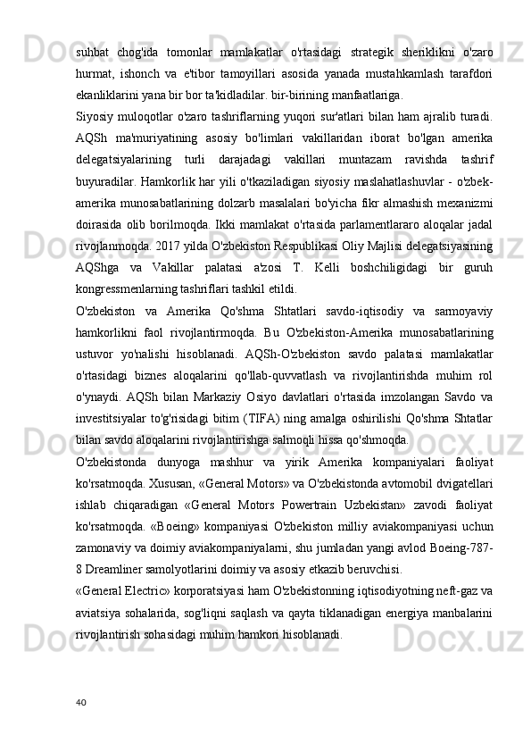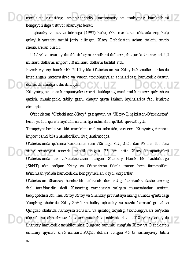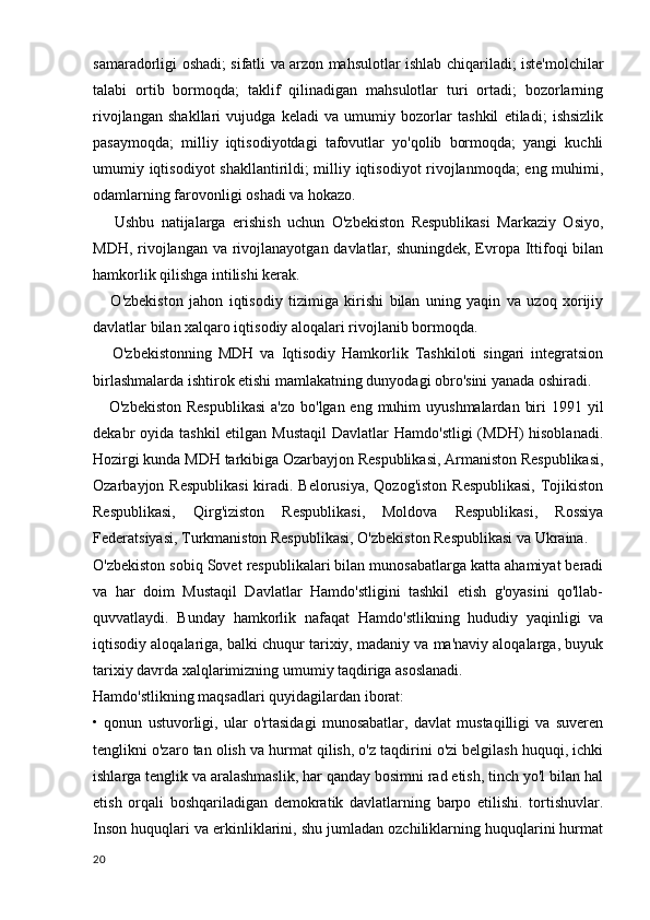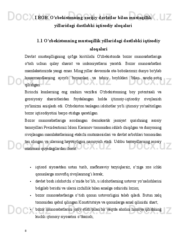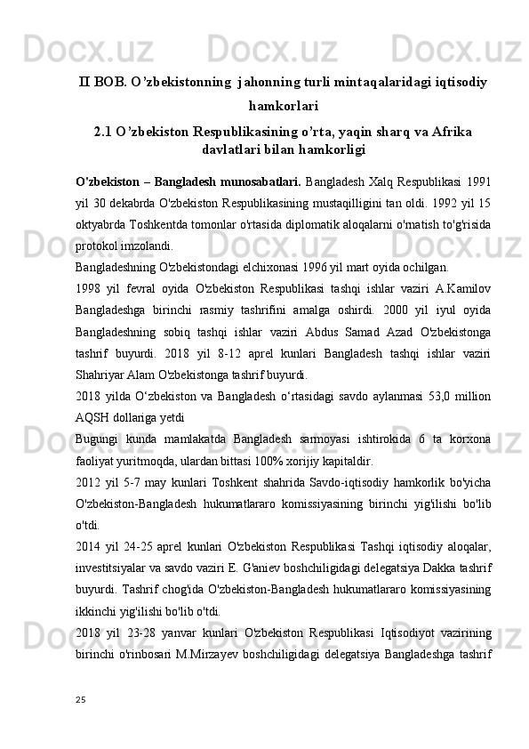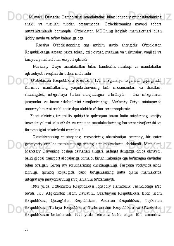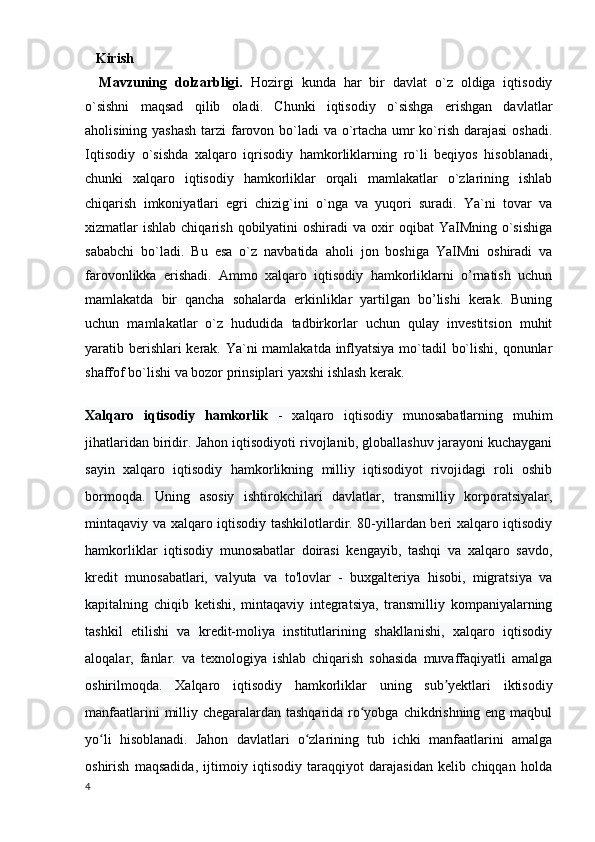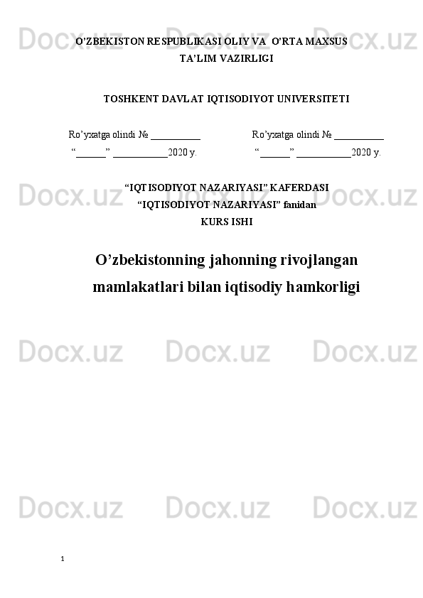 O’zbekistonning jahonning rivojlangan mamlakatlari bilan iqtisodiy hamkorligi