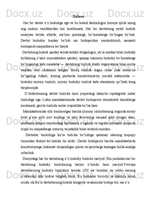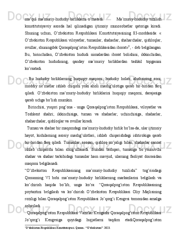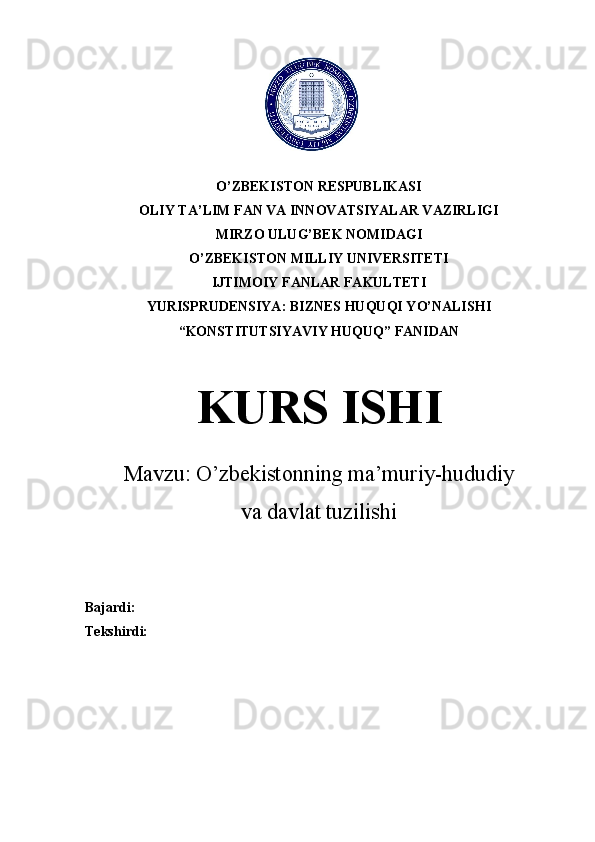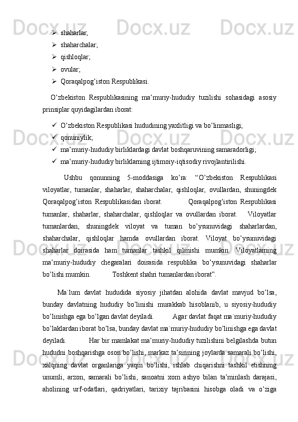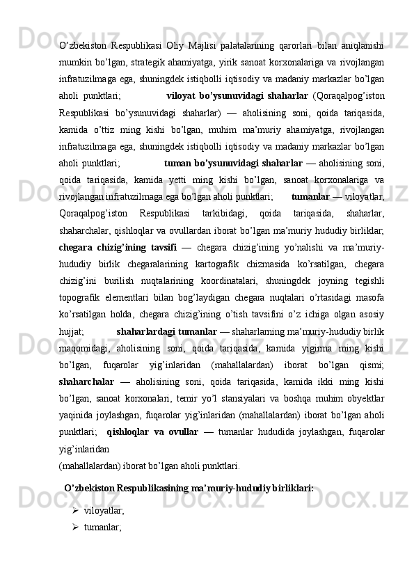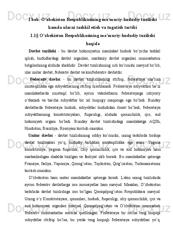 O’zbekistonning ma’muriy-hududiy va davlat tuzilishi