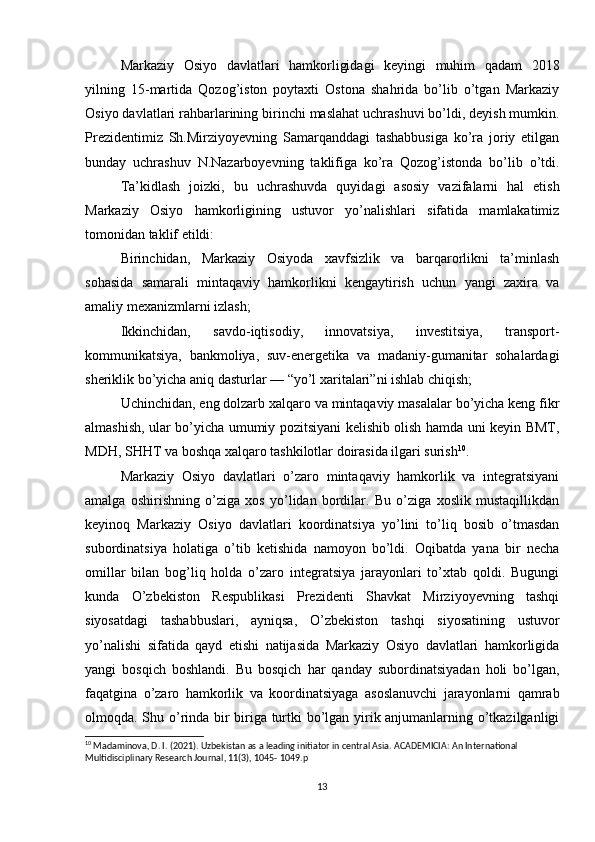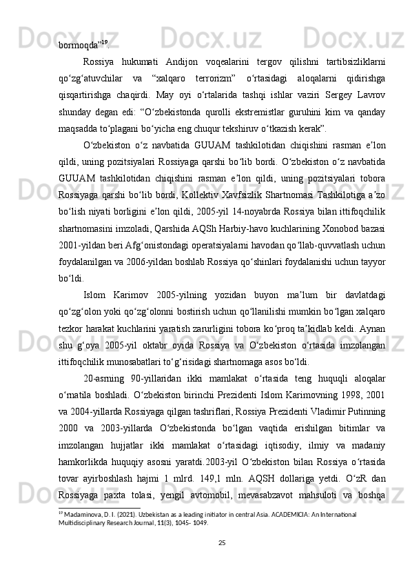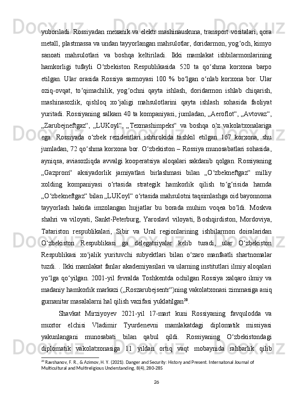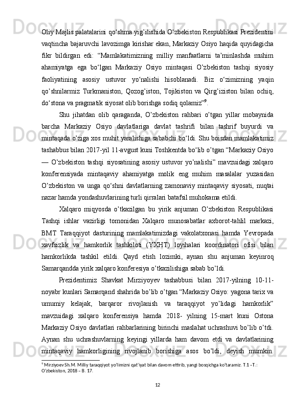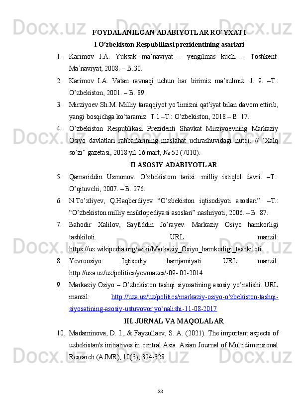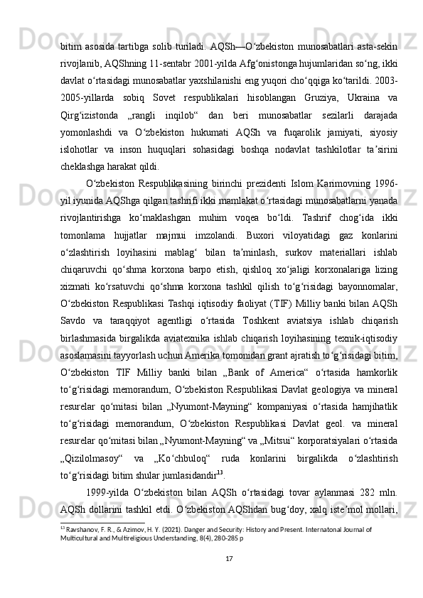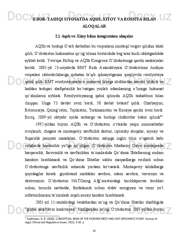 O'zbekistonning tashqi siyosiy aloqalari (1991-2021)