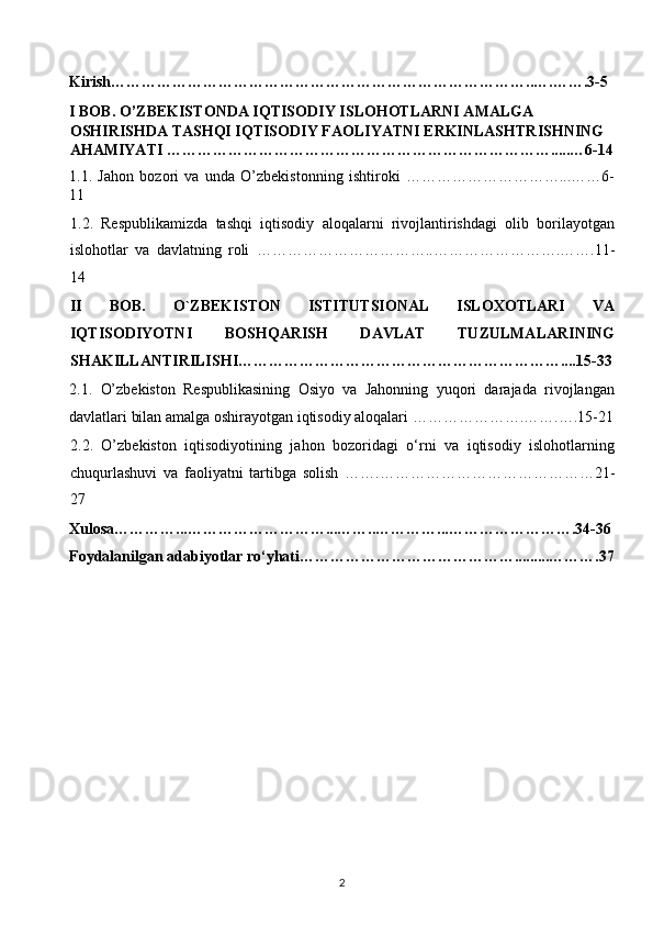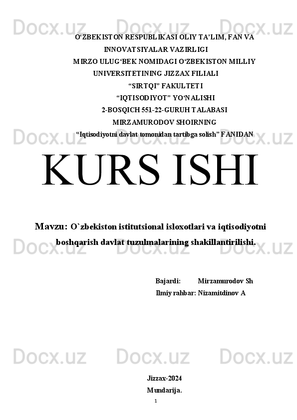 O'zbekoston institutsional isloxotlari va iqtisodiyotni boshqarish