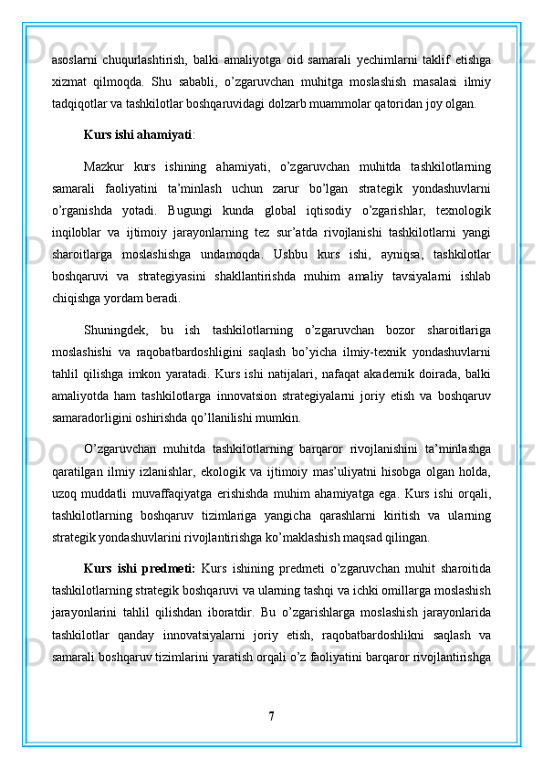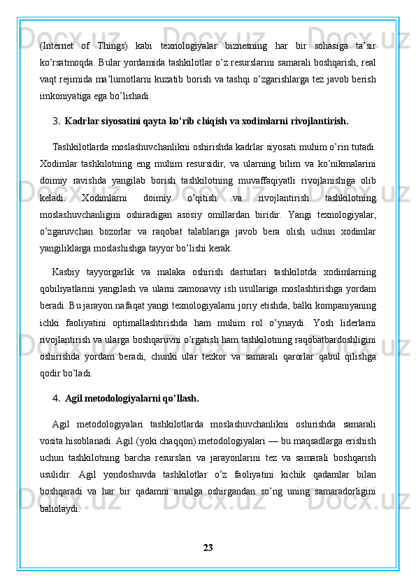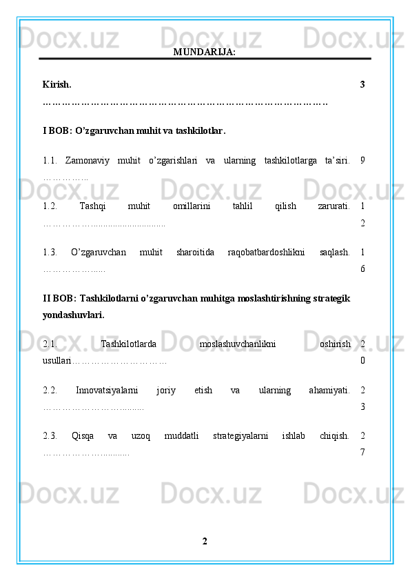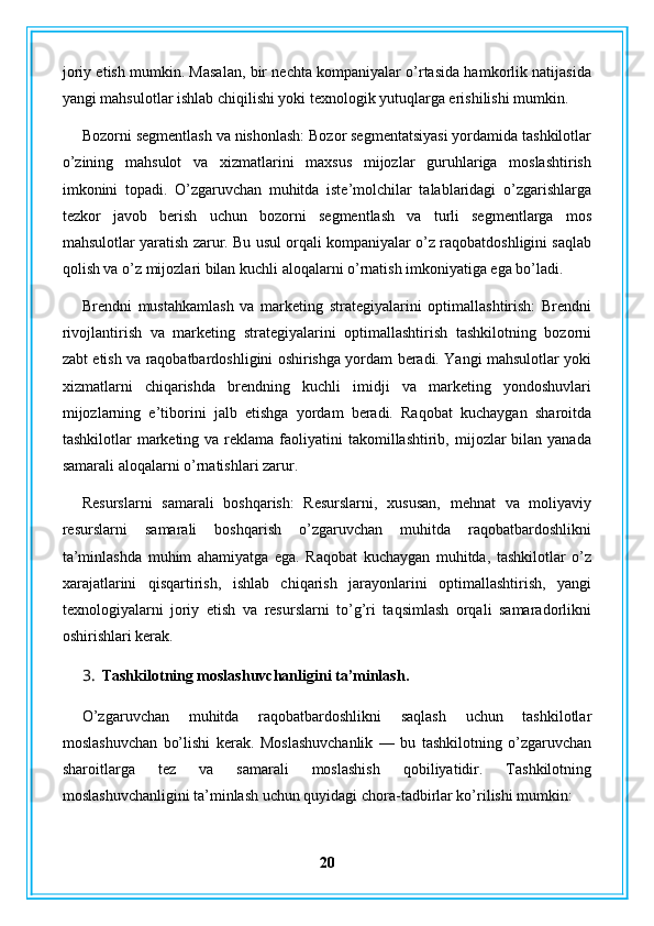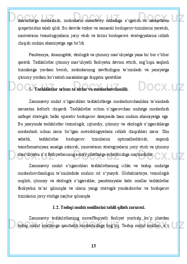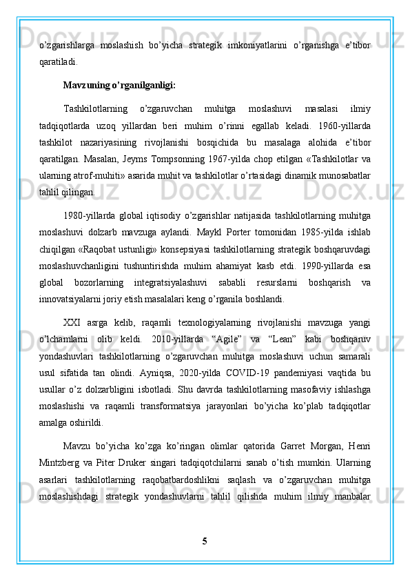 O’zgaruvchan muhitga tashkilotlarni moslashtirish