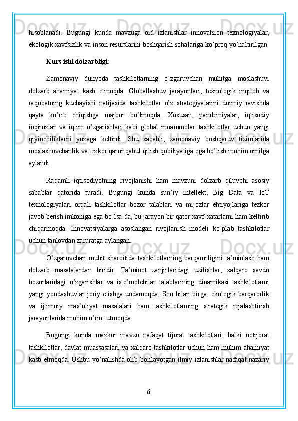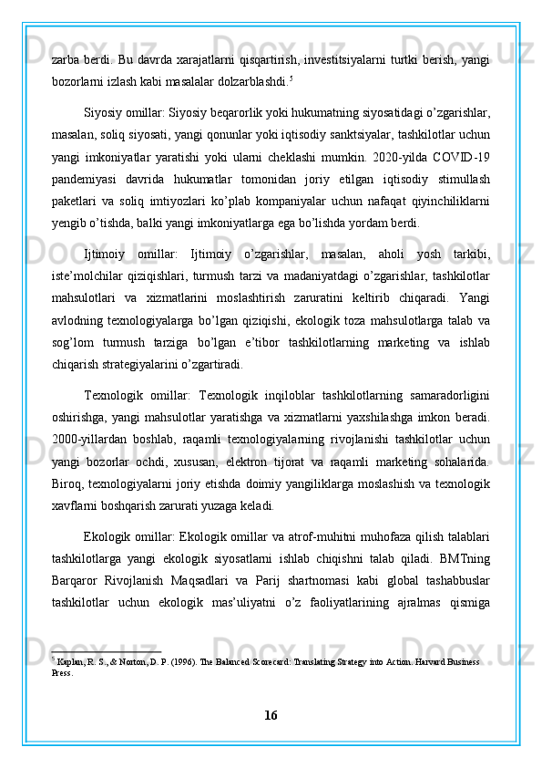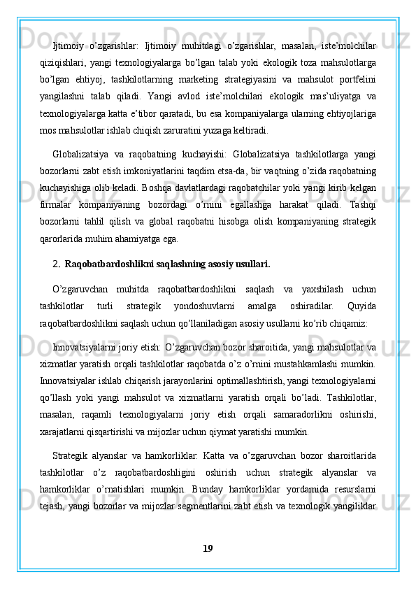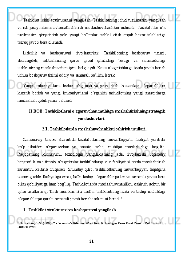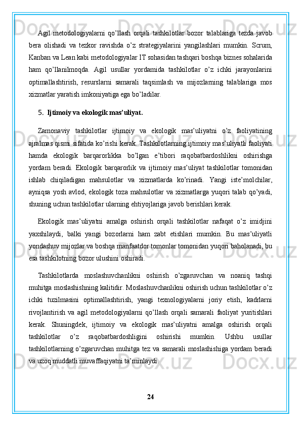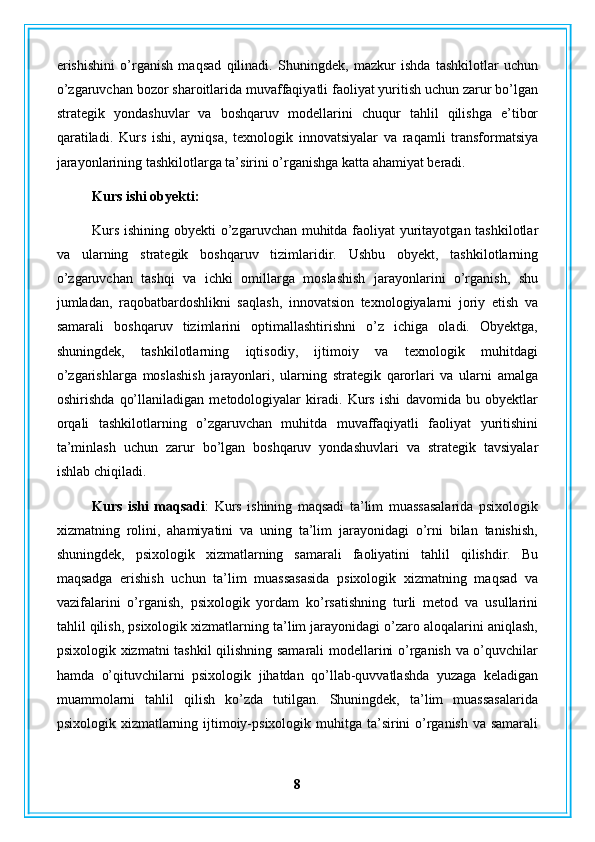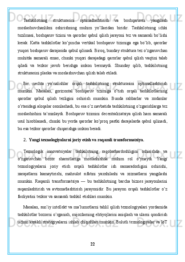 O’zgaruvchan muhitga tashkilotlarni moslashtirish