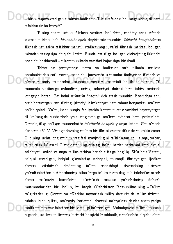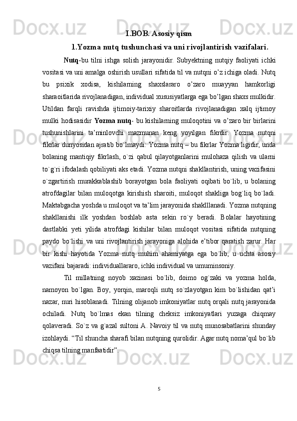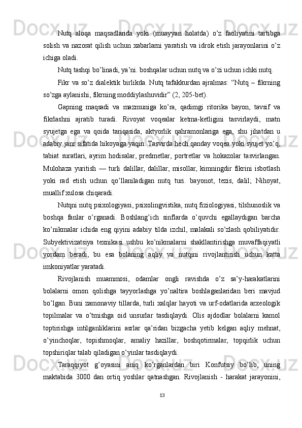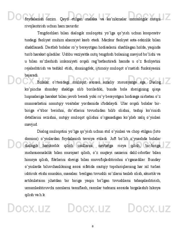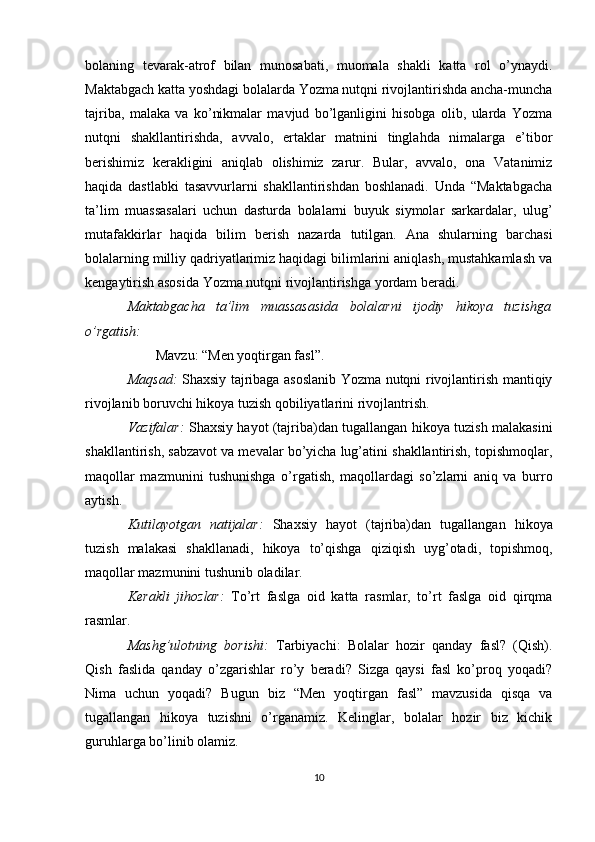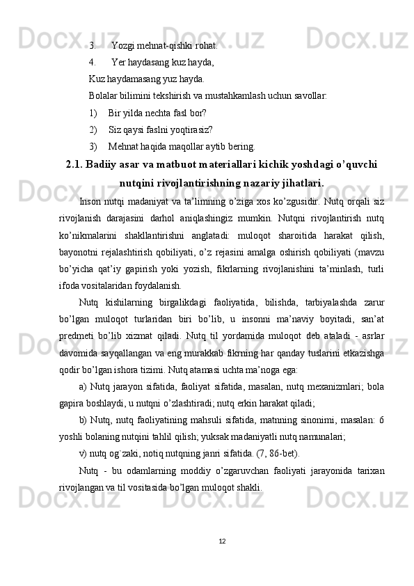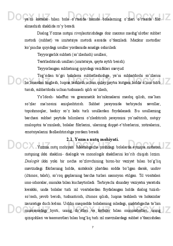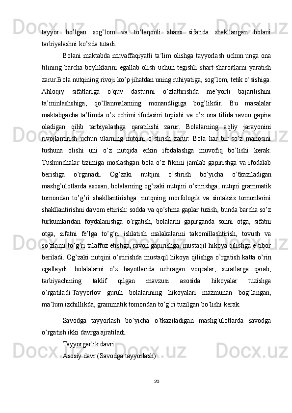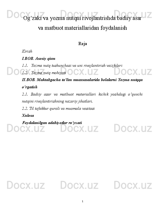 Og’zaki va yozma nutqni rivojlantrishda badiiy asar va matbuot materiallaridan foydalanish