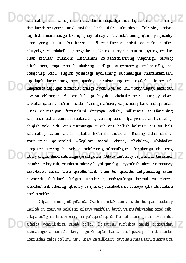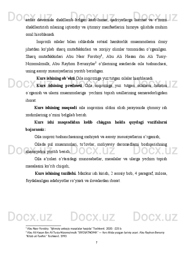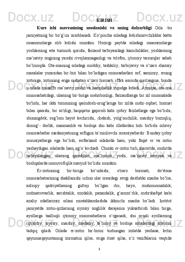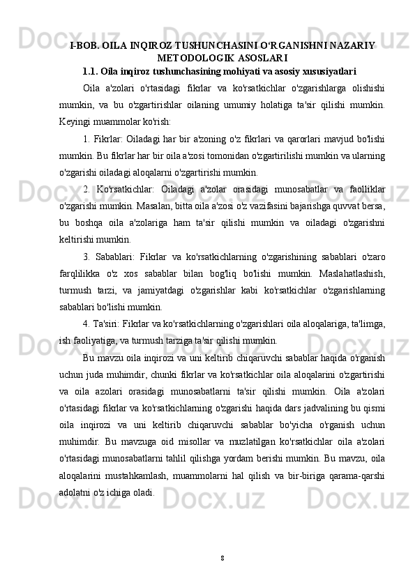 | I | BOB. OILA INQIROZ TUSHUNCHASINI O‘RGANISHNI NAZARIY METODOLOGIK ASOSLARI | |