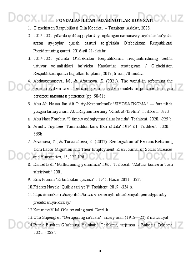 | FOYDALANILGAN ADABIYOTLAR RO‘YXATI |