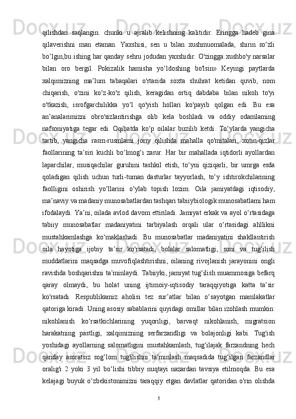 Oila inqirozi va uni keltirib chiqaruvchi asosiy sabablar