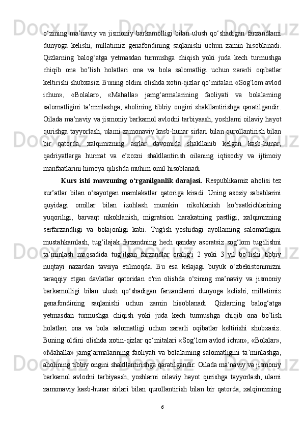 | 2.2. | Oila inqirozi va uni keltirib chiqaruvchi sabablarga qonuniy yechim topish usullari. | |