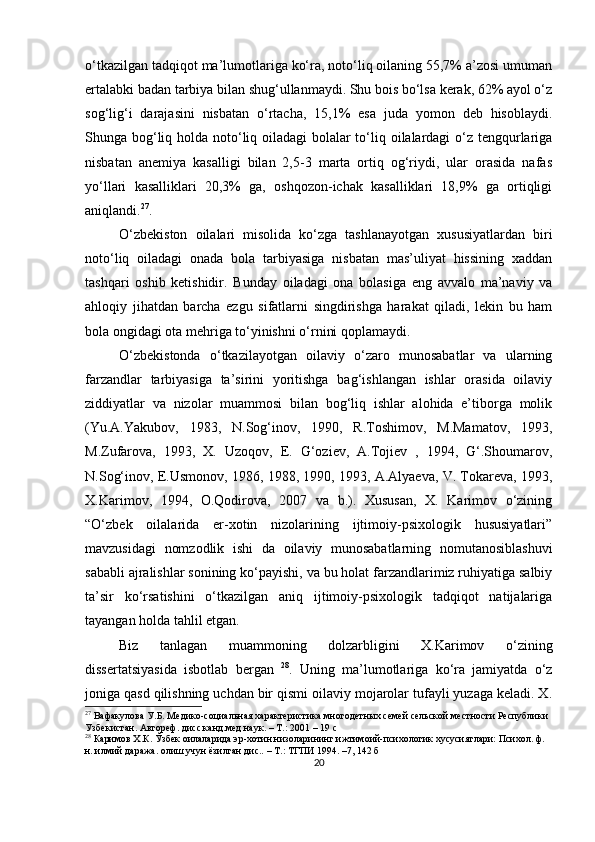 borilmoqdа,   lekin   to‘liq   vа   noto‘liq   oilаdа   hozirgi   zаmondа   onа   tа’siridа   bolа