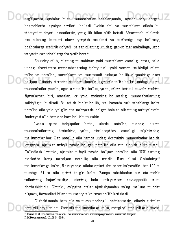 32 Lekin   muаmmo   yаnа   noto‘liq   oilаgа   kelib   tаqаlаdi.   Yuqoridа   аytilgаnidek,