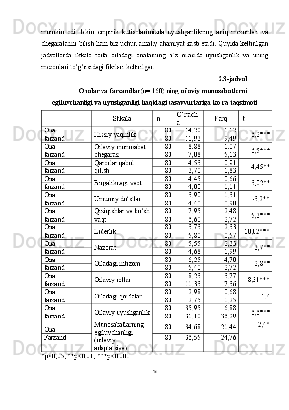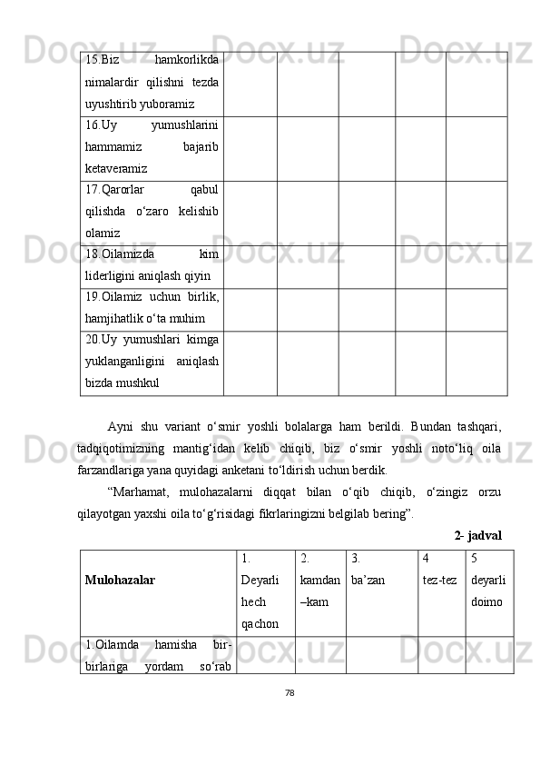 jihatdan   bog’liqlik   mavjud.   (p<0.01;r=0. 20 ).   Bundan   ko‘rinib   turibdiki,   oilada