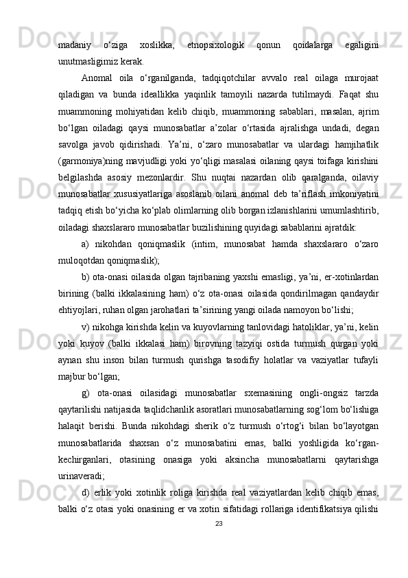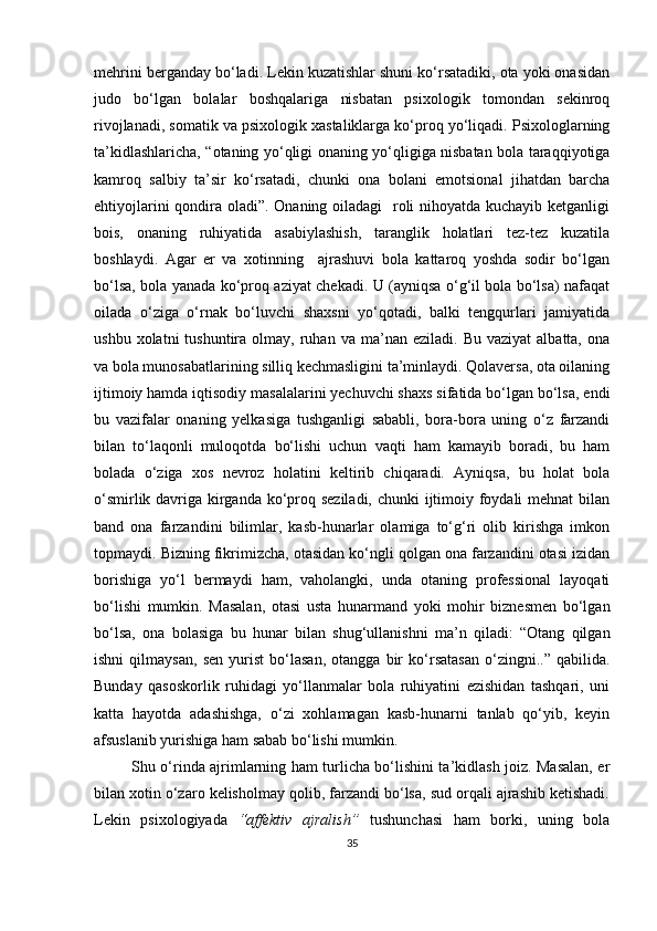 Oilаdа otа-onа va fаrzаnd munosаbаtlаri muammolarining ijtimoiy-рsixologik omillari