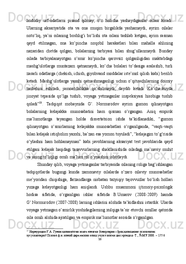o‘zbekchilik   tamoyillari   shundayki,   ota-onalar   voyaga   yetayotgan   farzandining