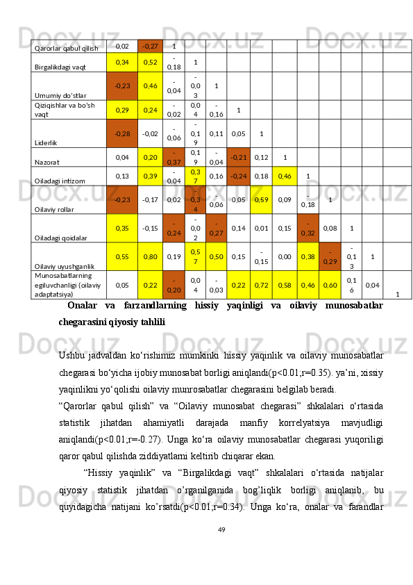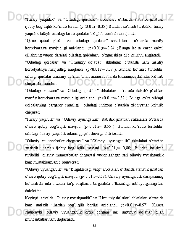 munosabat   borligi   aniqlandi   (p<0.01;r=0.52).   Bunda,   oilaviy   munosabatlar