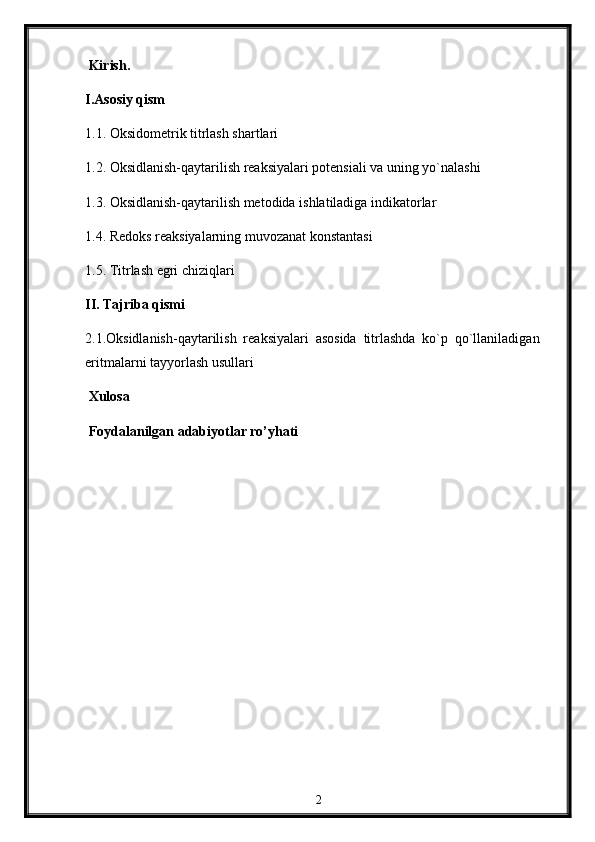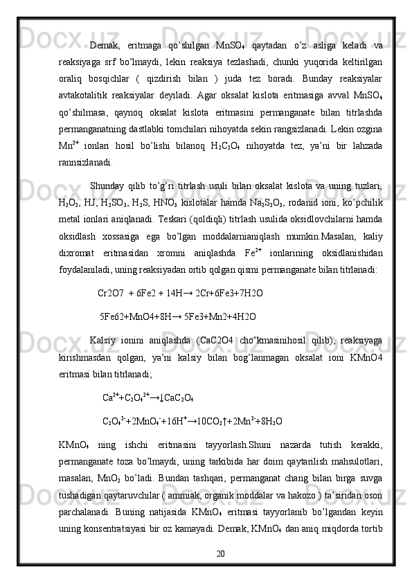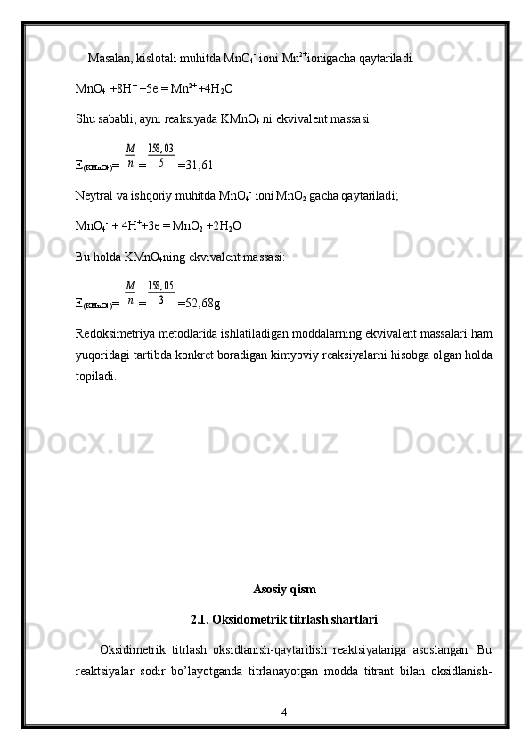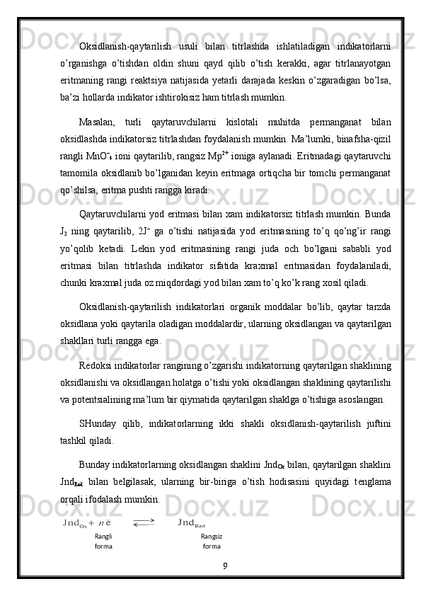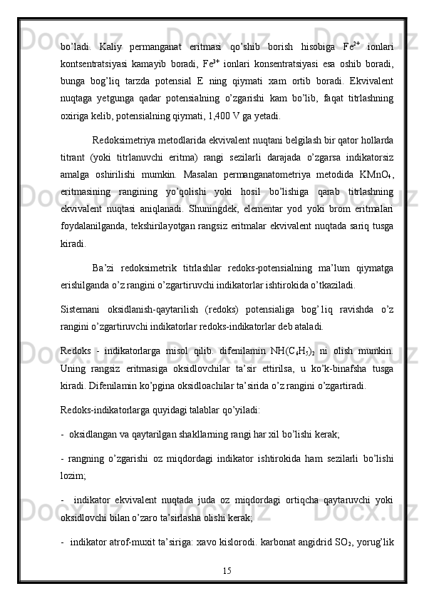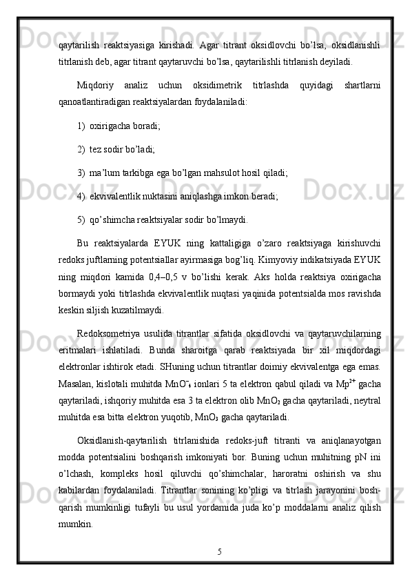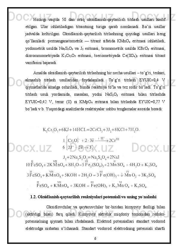 2 .1.Oksidlanish-qaytarilish   reaksiyalari   asosida   titrlashda   ko`p