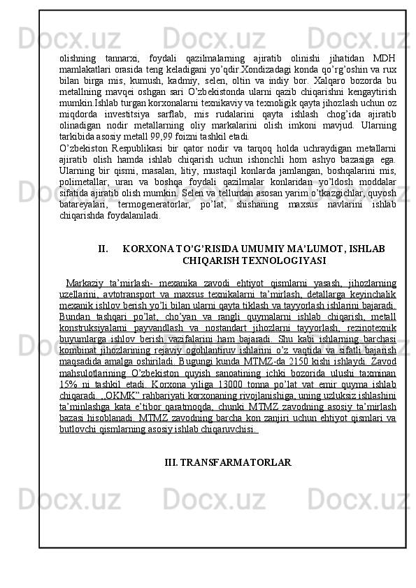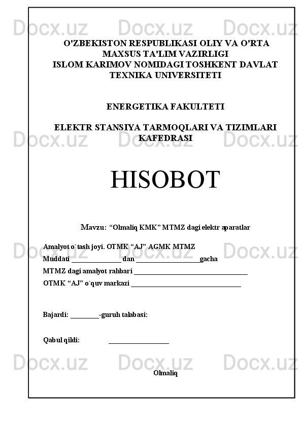 “Olmaliq KMK” MTMZ dagi elektr aparatlar
